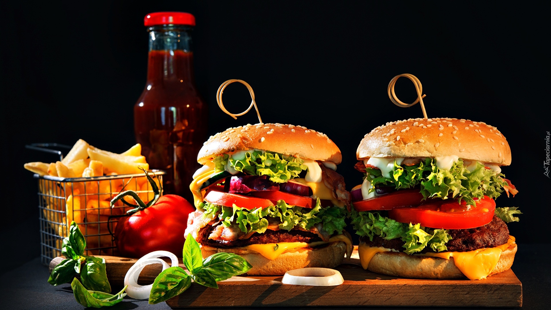 Edytor tapety: Hamburgery z frytkami