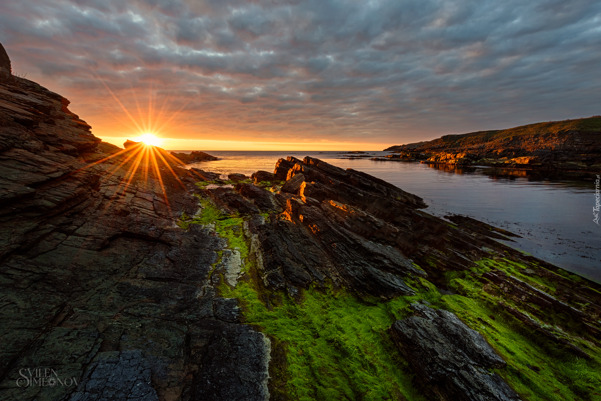 Edytor tapety: Nadmorskie skały w promieniach słońca