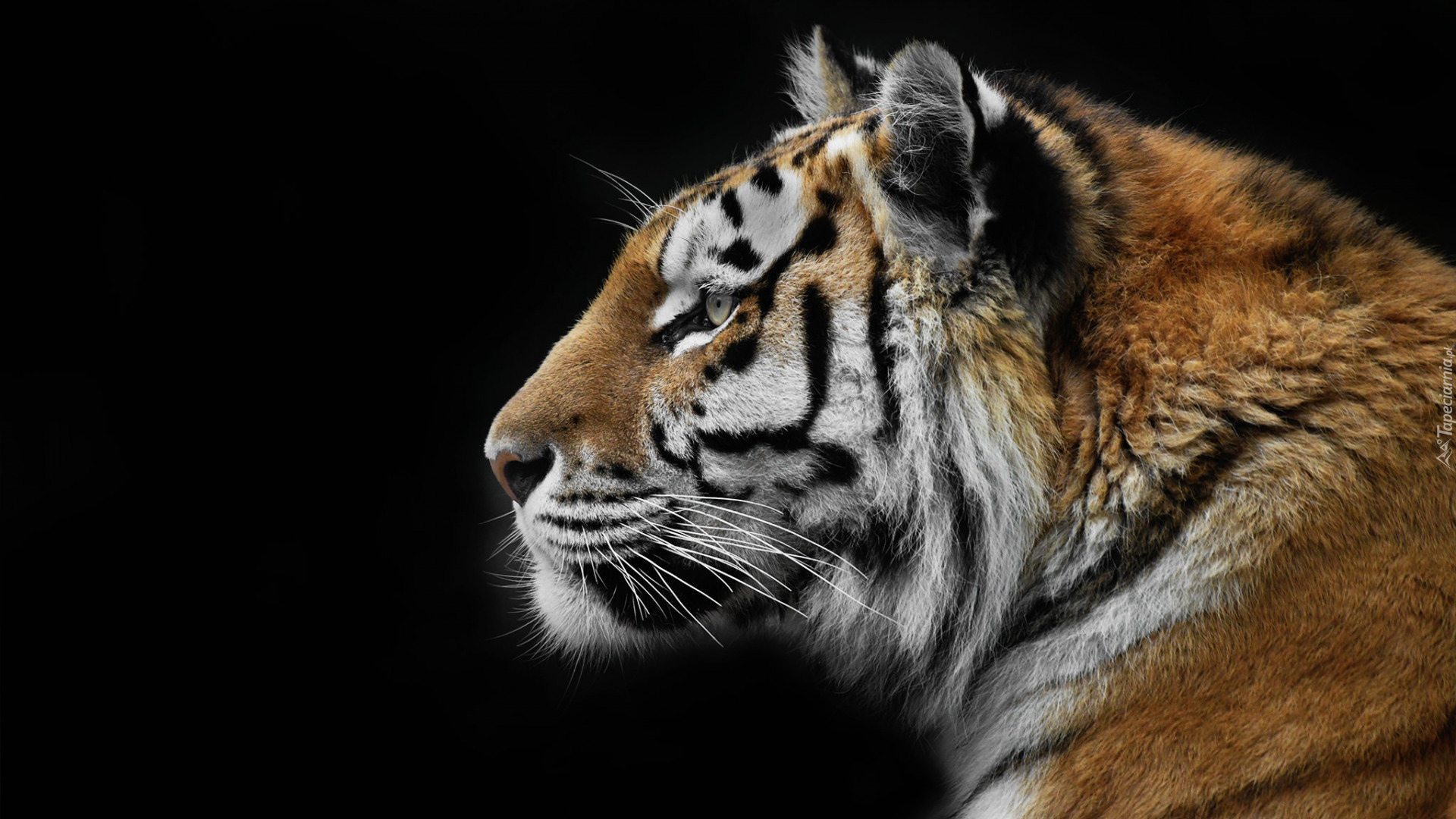 Edytor tapety: Profil tygrysa na czarnym tle