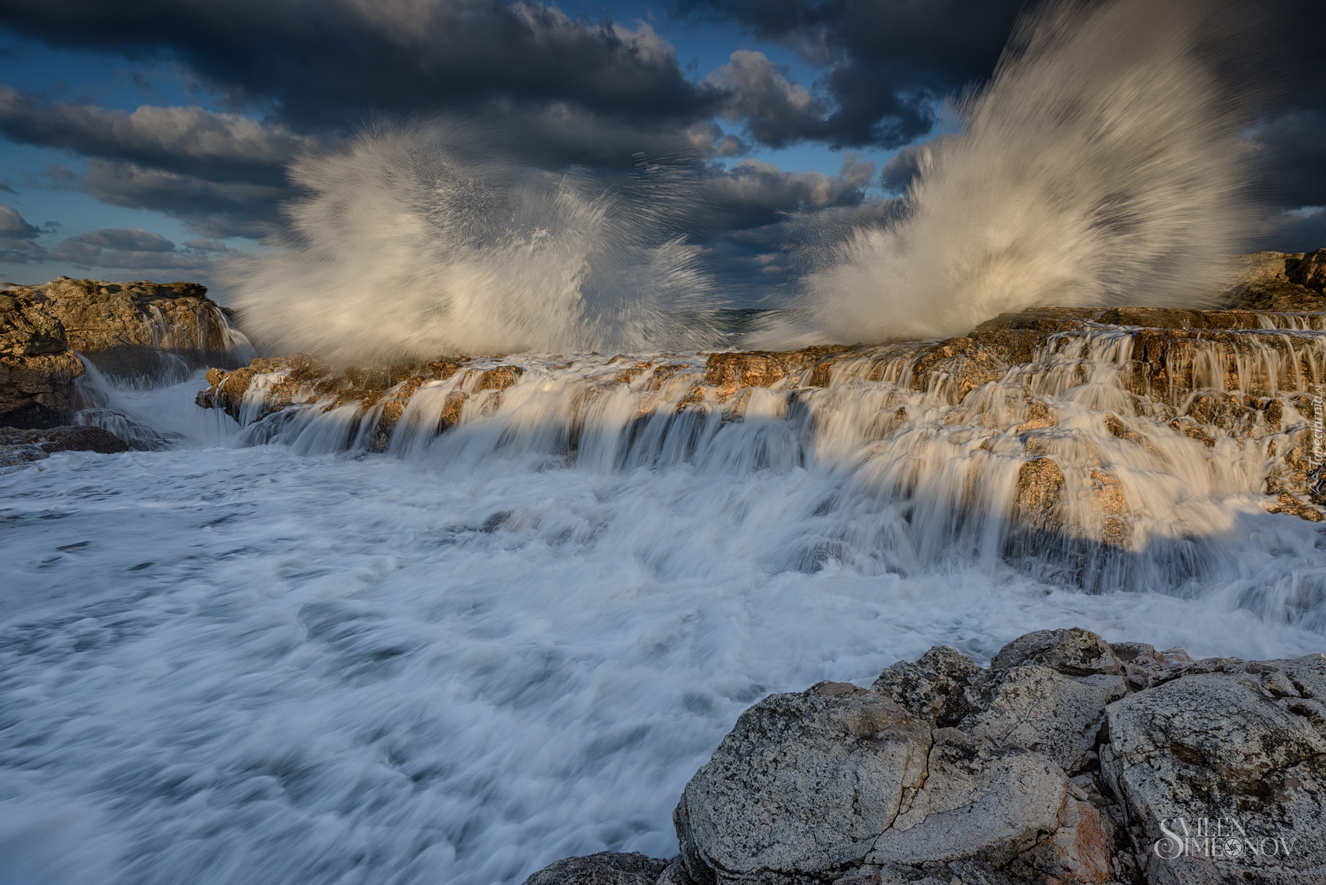 Edytor tapety: Wzburzone morskie fale na skałach