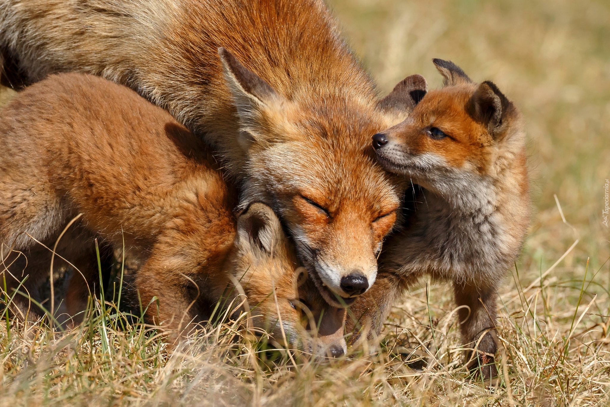 Edytor tapety: Młode liski z mamą