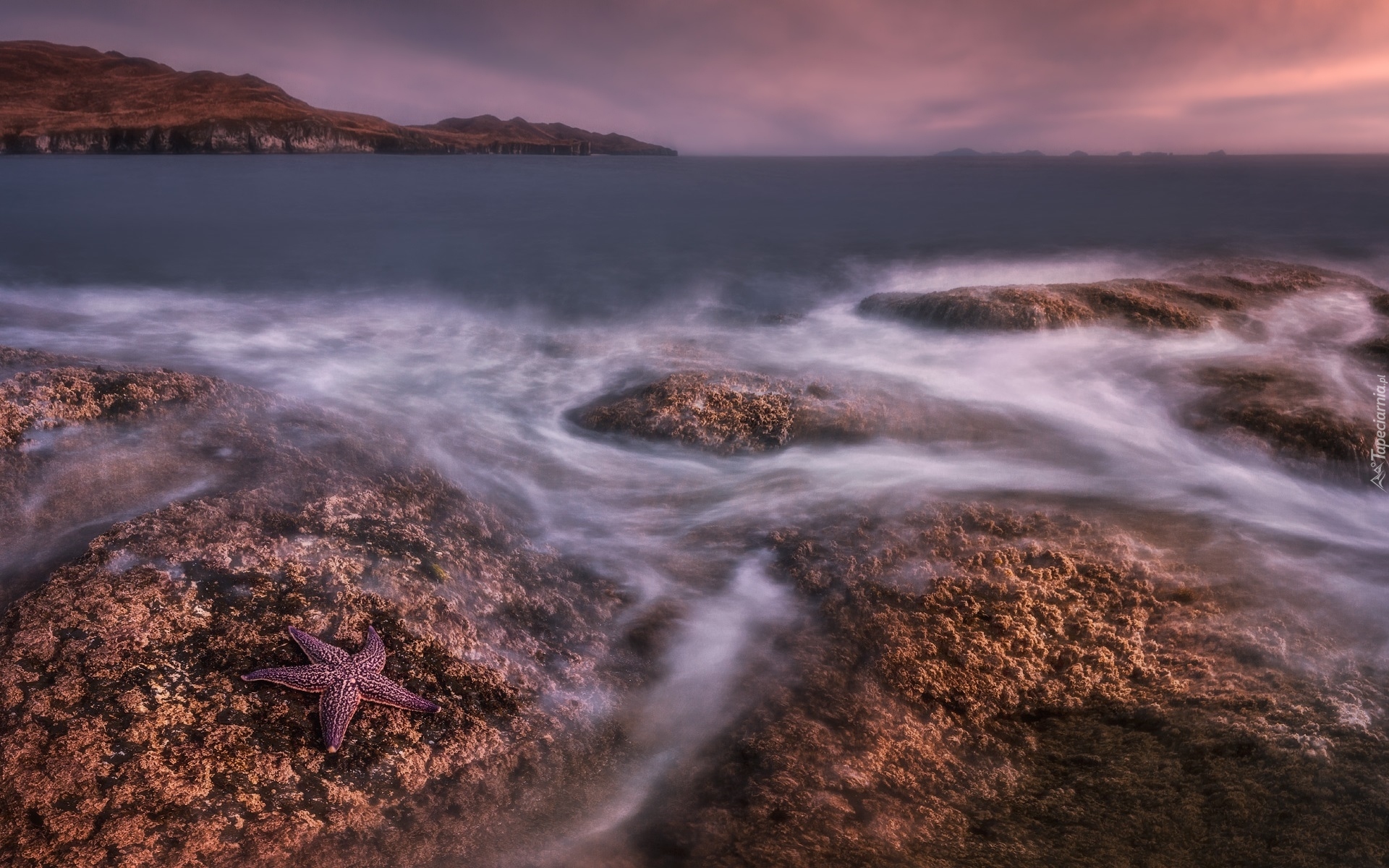 Edytor tapety: Rozgwiazda na skale przy brzegu morza Japońskiego