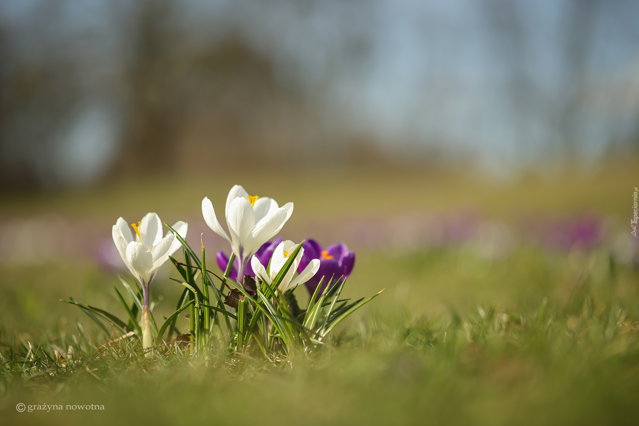Edytor tapety: Kępka białych i fioletowych krokusów