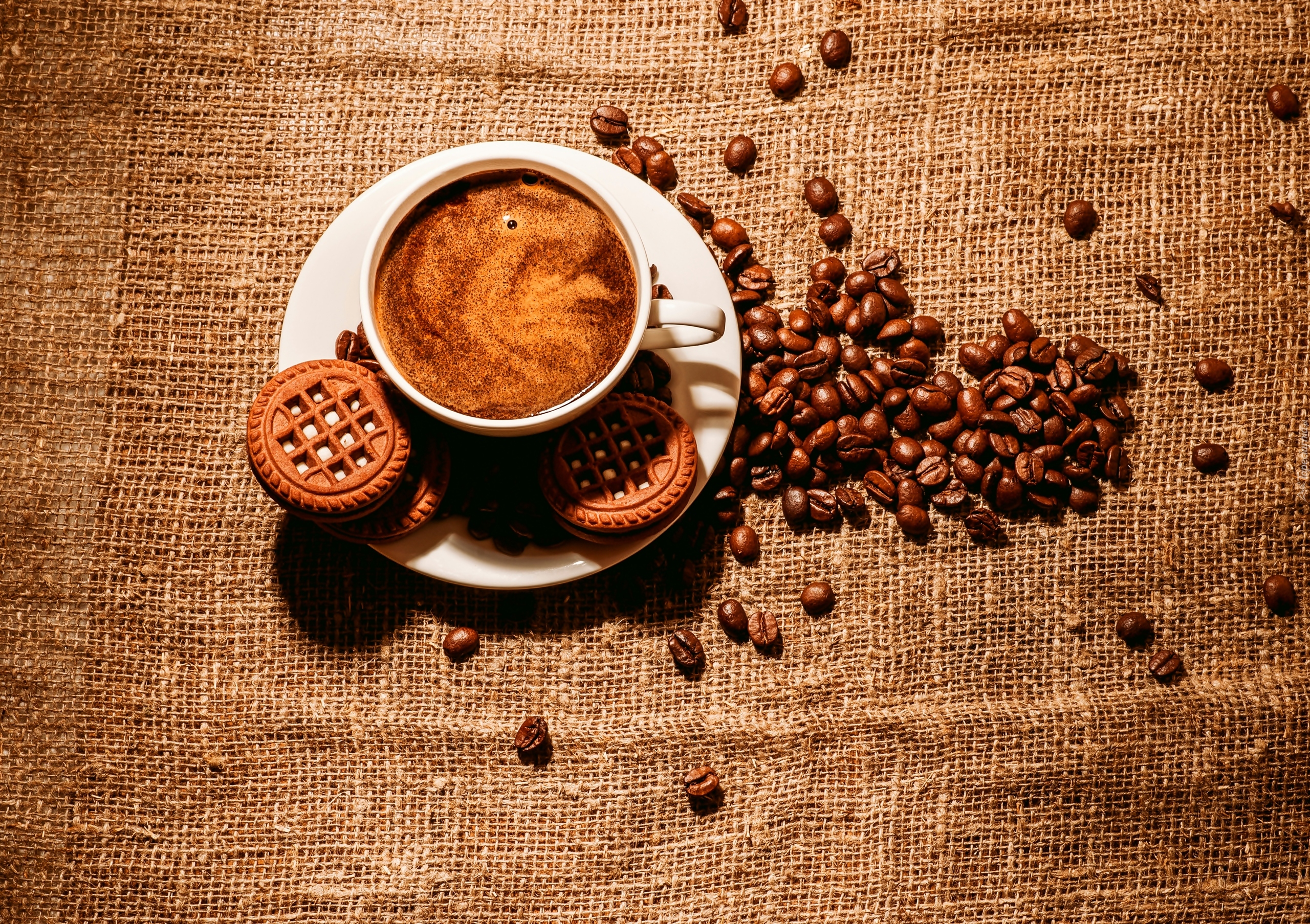 Edytor tapety: Kawa w filiżance i ciasteczka