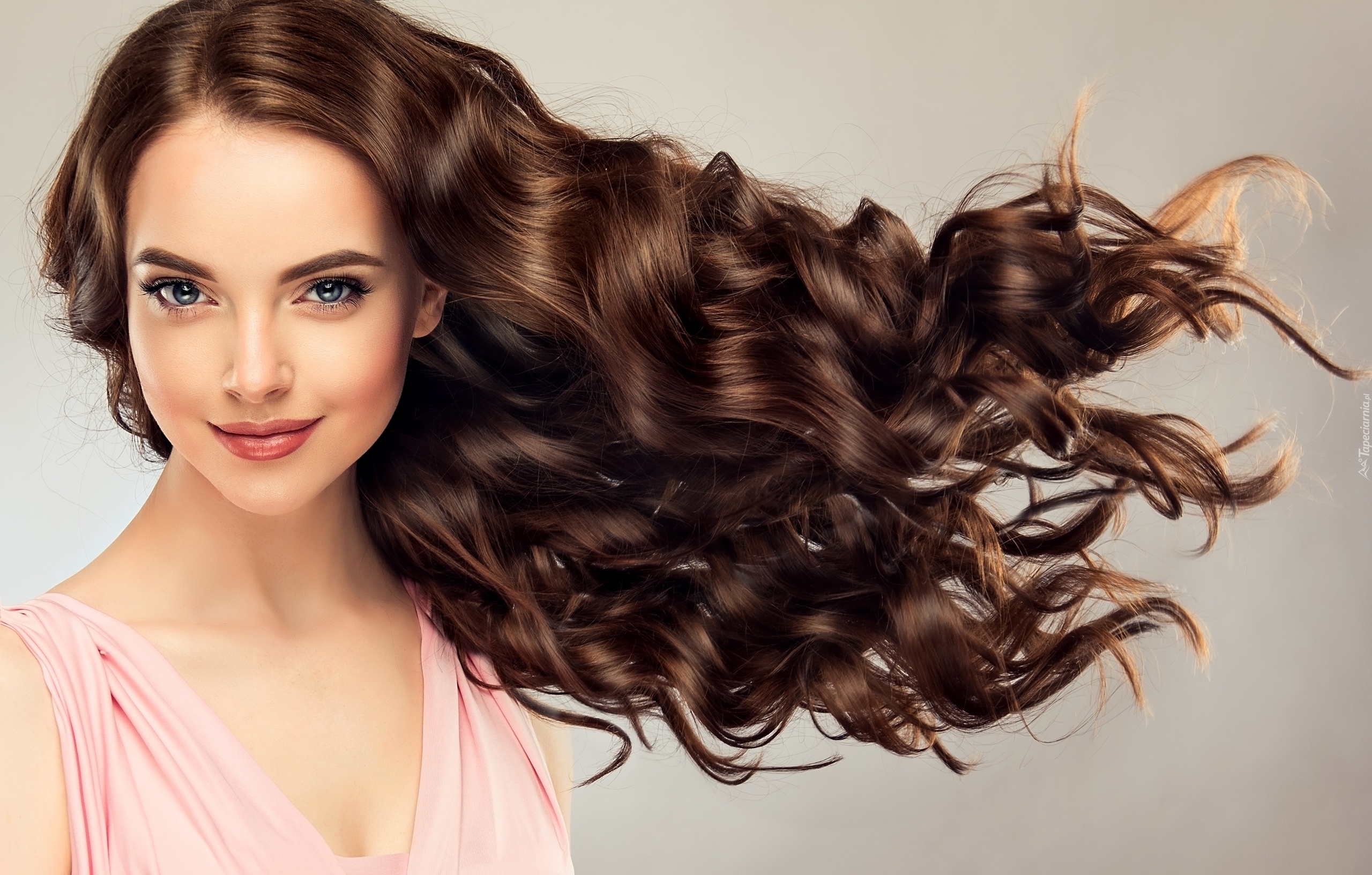Edytor tapety: Uśmiechnięta dziewczyna z rozwianymi włosami
