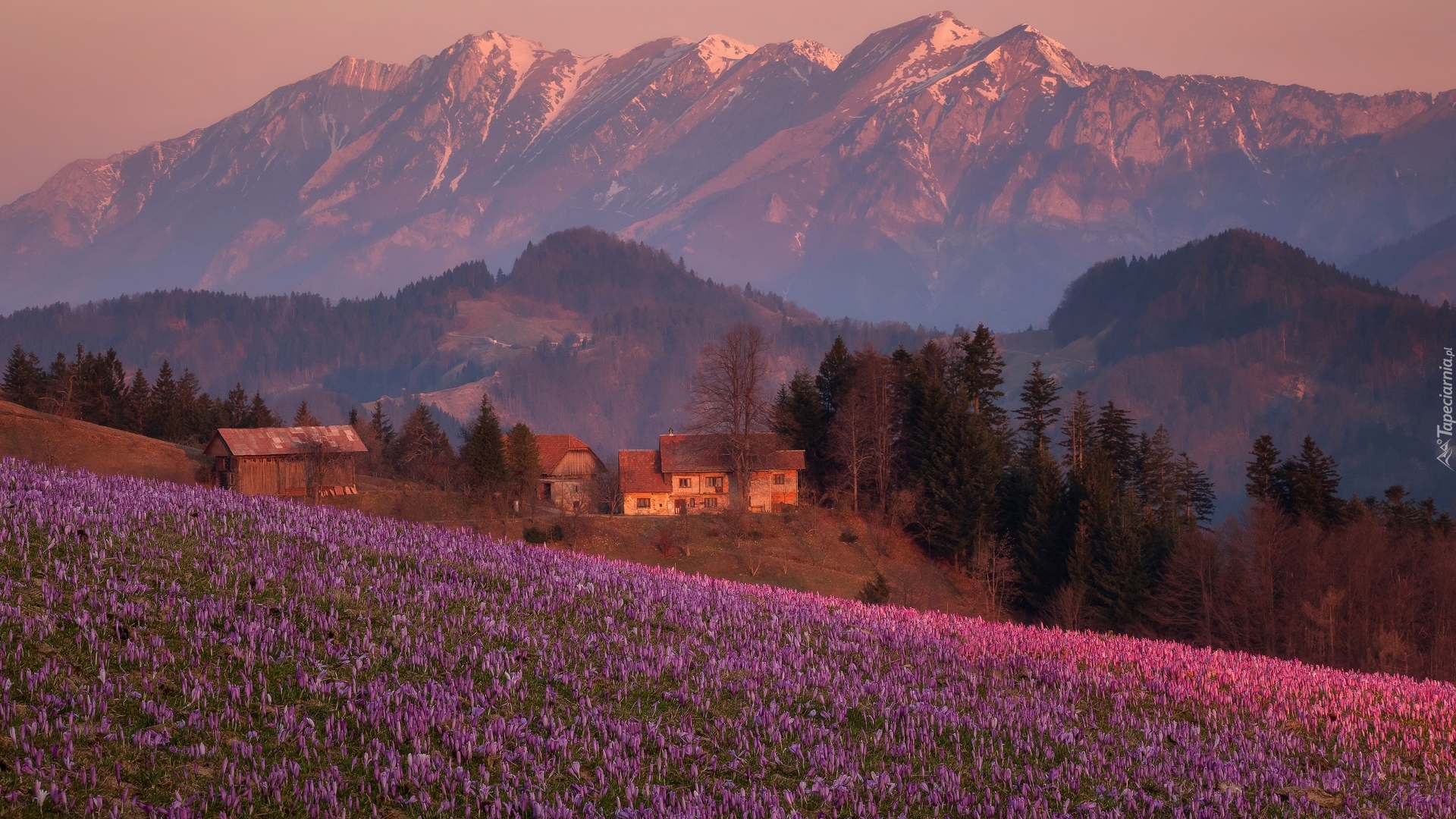 Edytor tapety: Kwitnące krokusy na górskiej łące