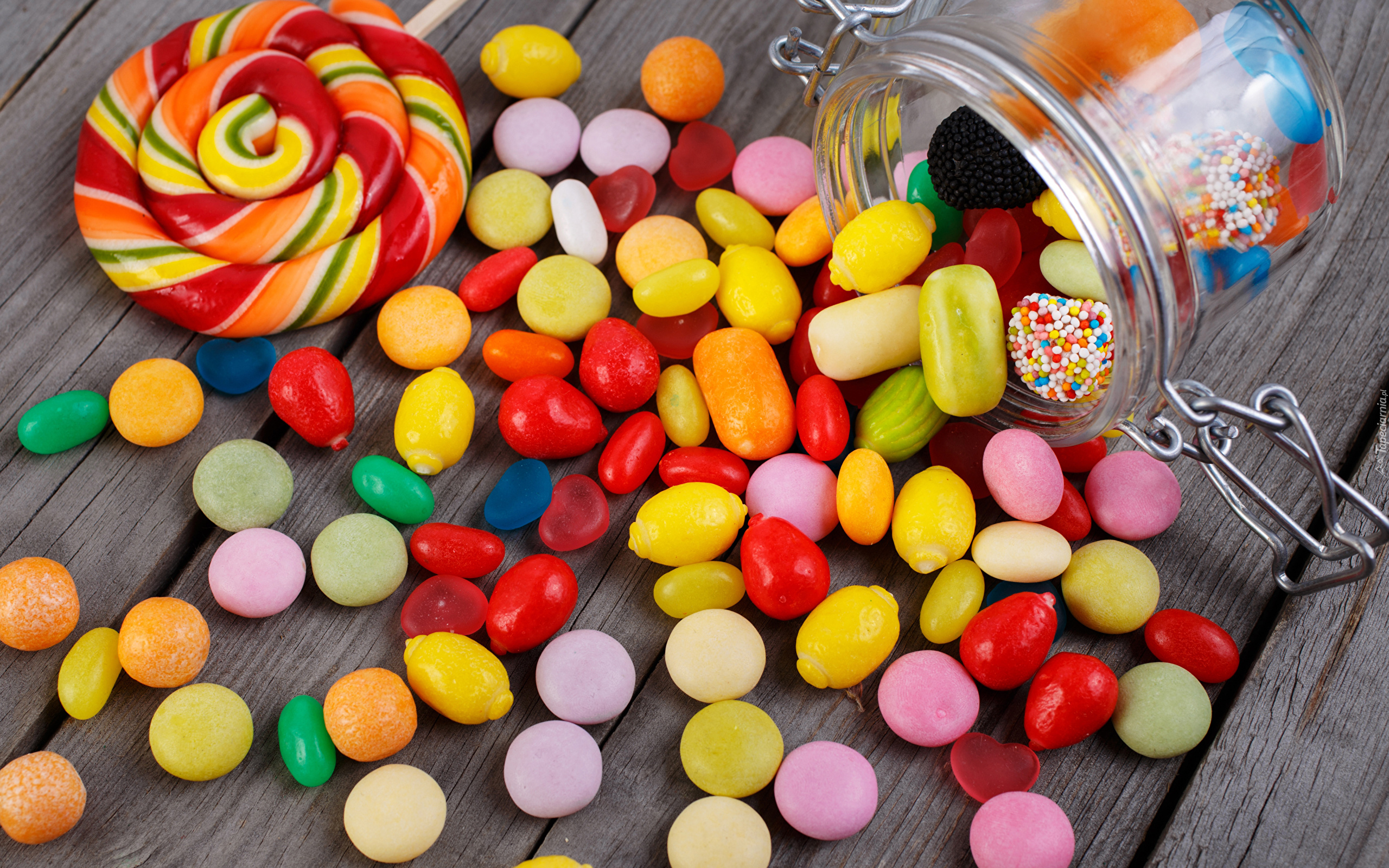 Edytor tapety: Kolorowe cukierki i lizaki w słoiku