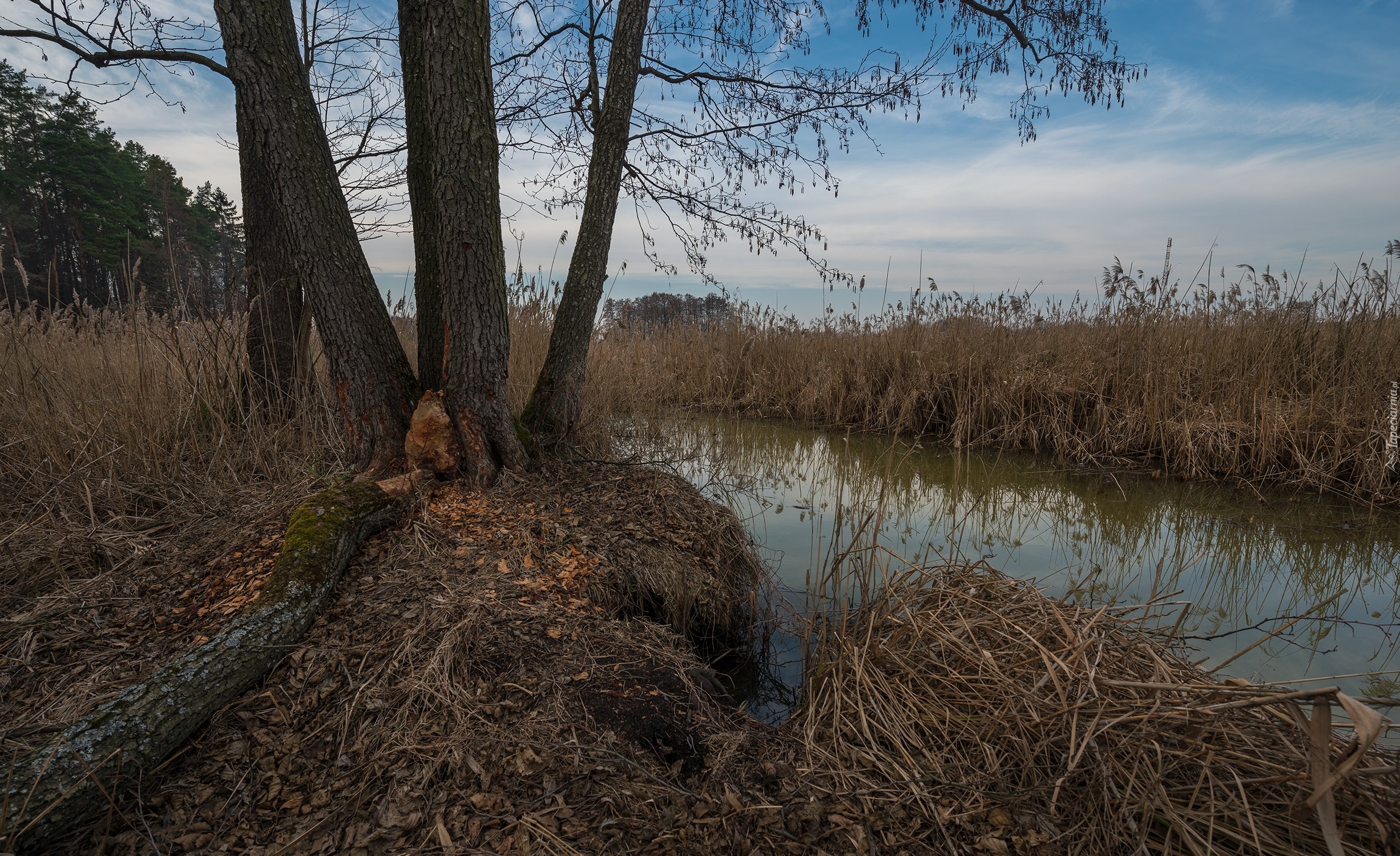 Edytor tapety: Szuwary i drzewa nad rzeką