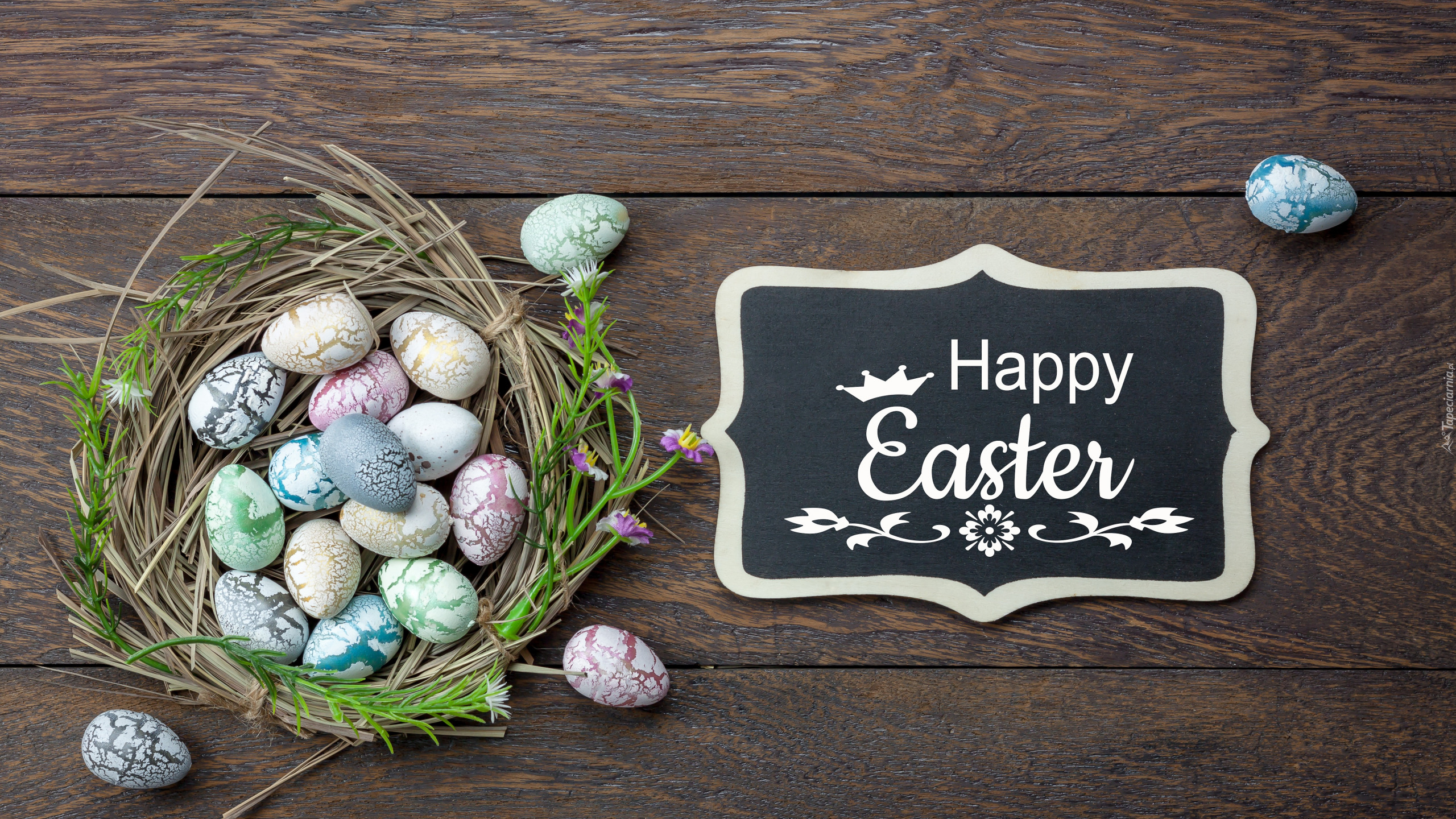 Edytor tapety: Jajeczka w wianku obok tabliczki z życzeniami