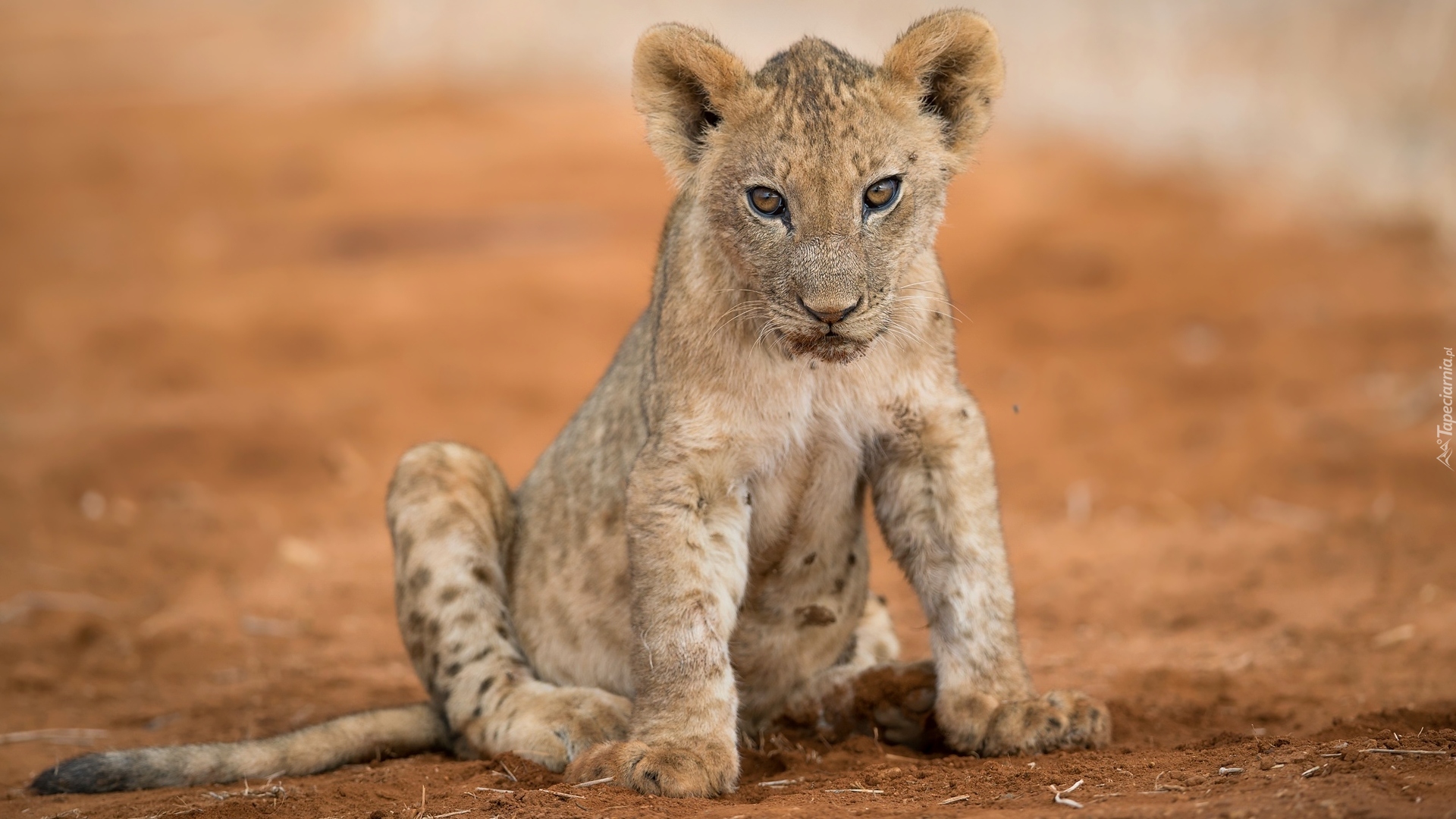 Edytor tapety: Siedzące małe lwiątko