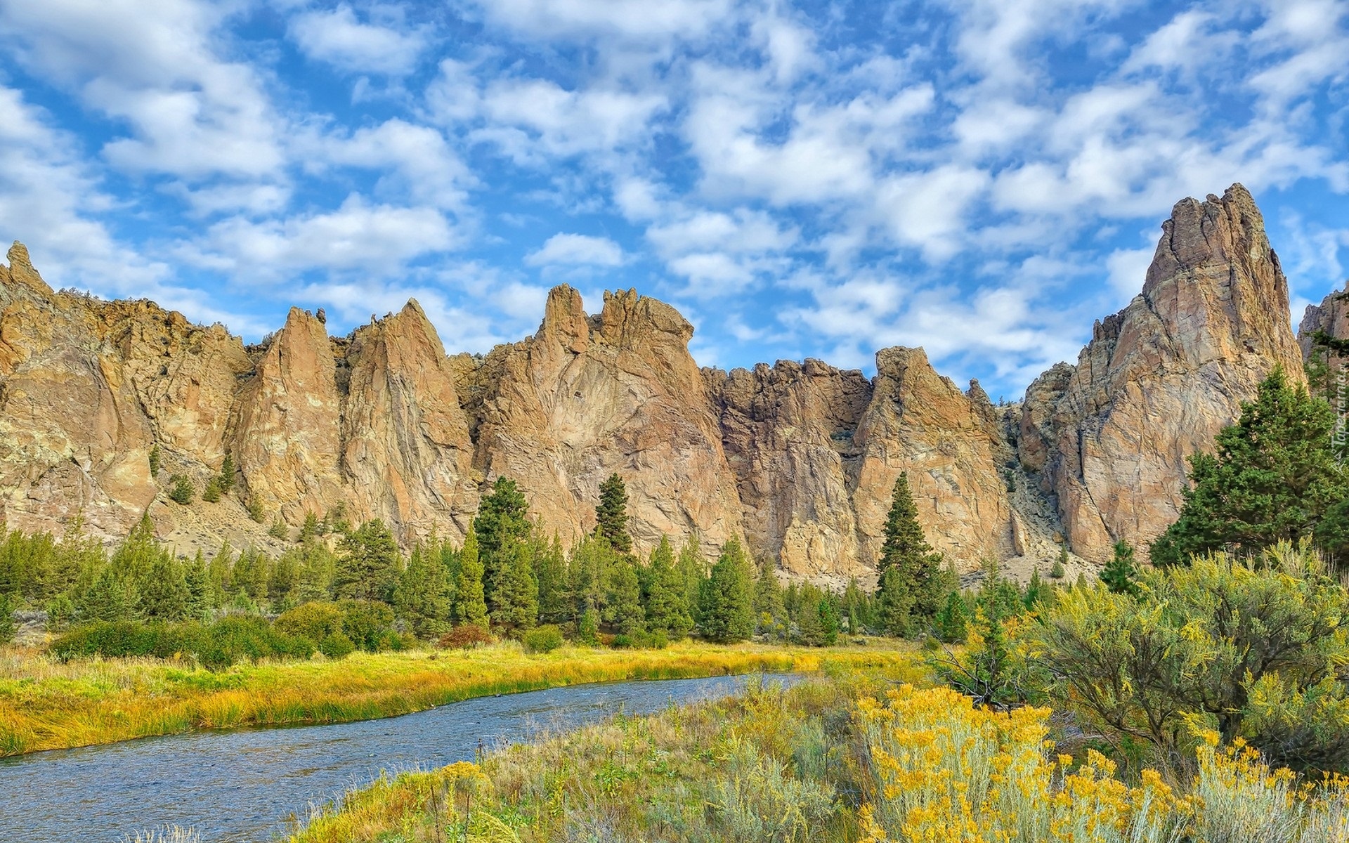 Edytor tapety: Drzewa i rośliny nad górską rzeką