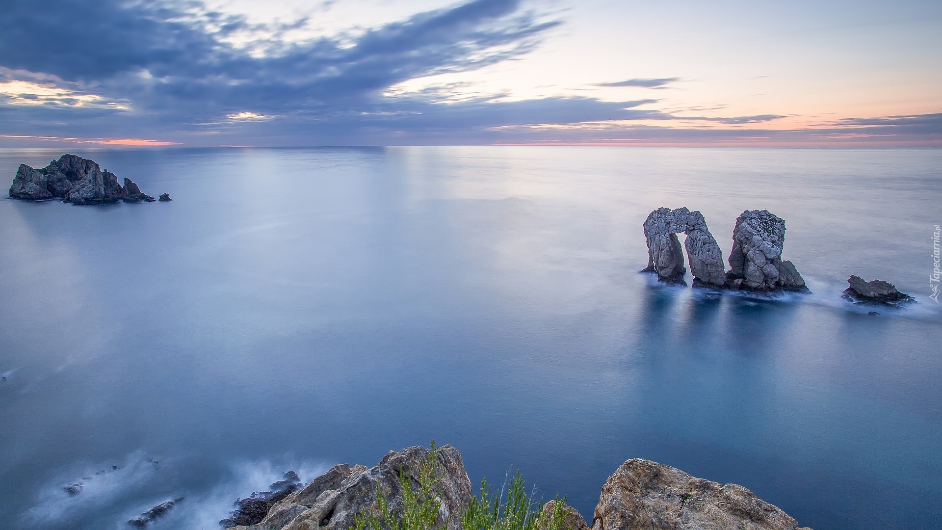 Edytor tapety: Skały w morzu na tle błękitnego nieba