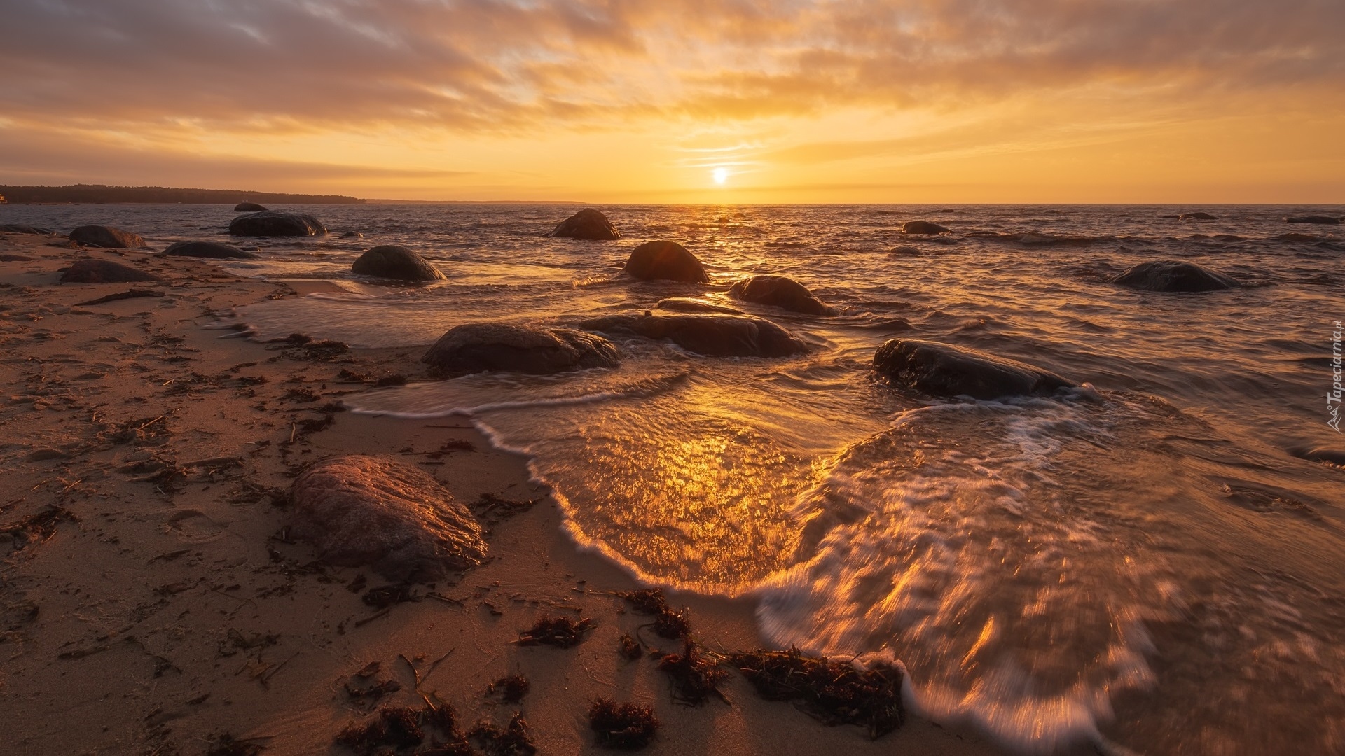 Edytor tapety: Kamienie na brzegu morza w słonecznym blasku