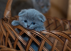 Edytor tapety: Mały szary kotek w koszyku