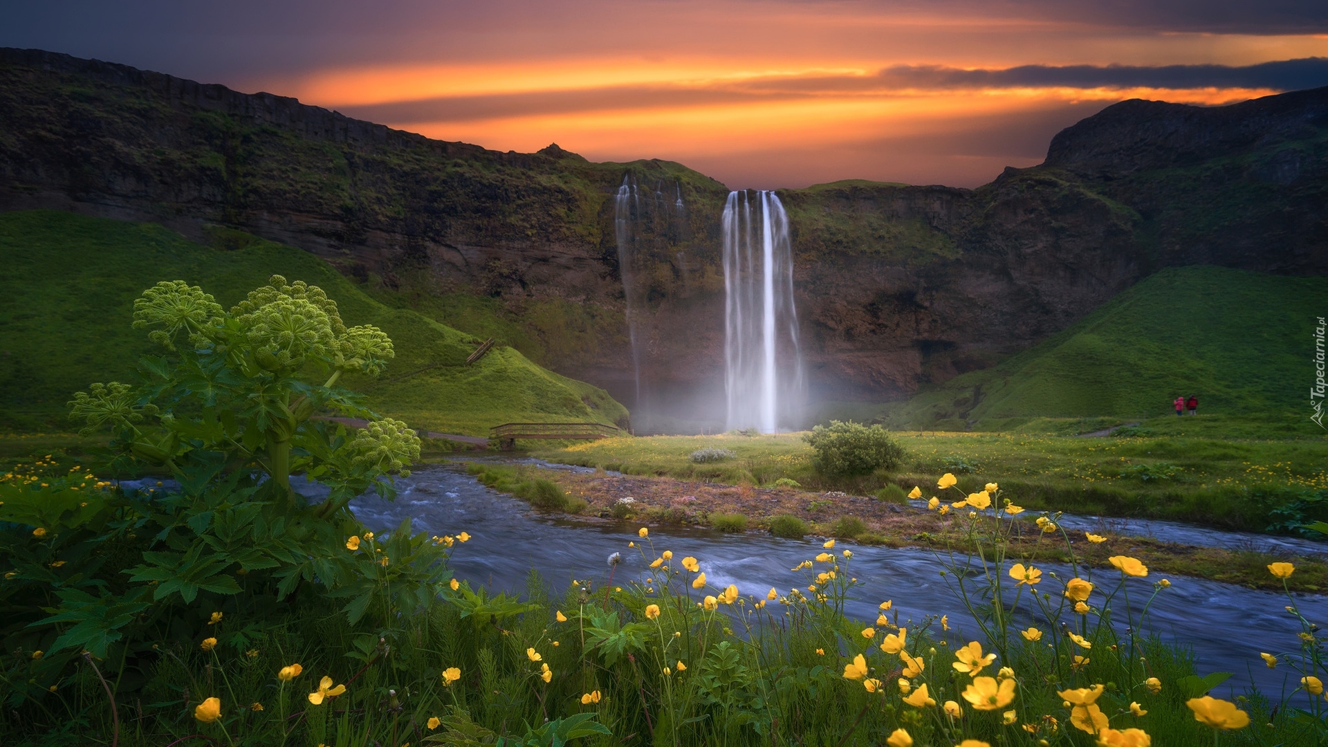 Edytor tapety: Rzeka Seljalandsa na tle wodospadu Seljalandsfoss
