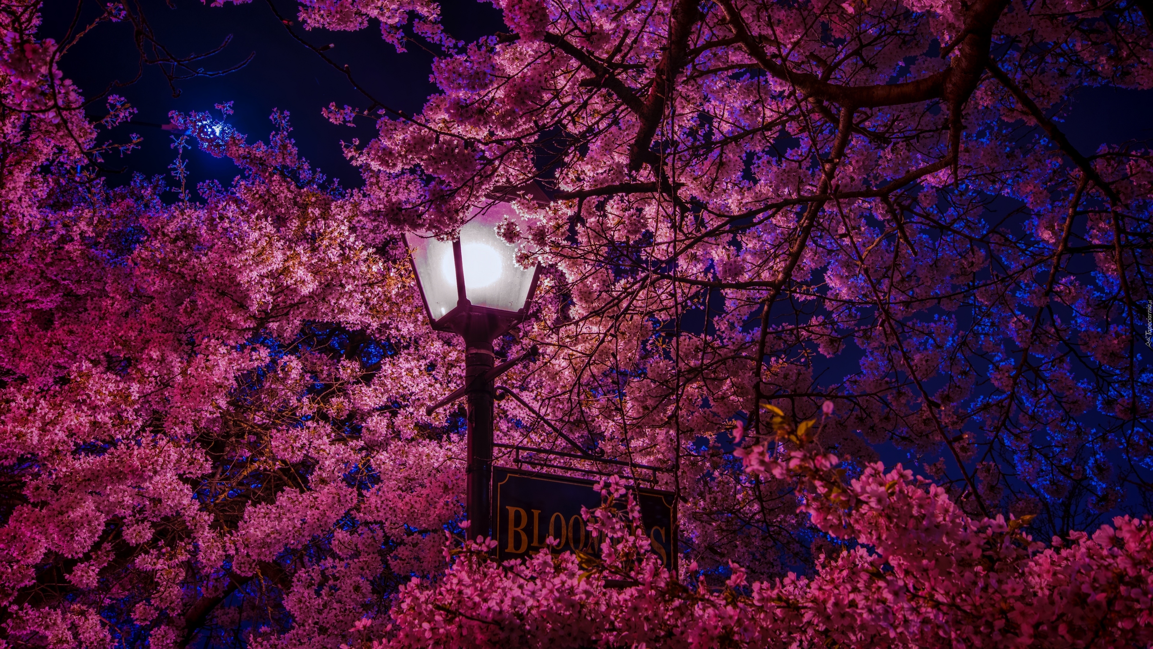 Edytor tapety: Kwitnąca wiśnia w świetle latarni