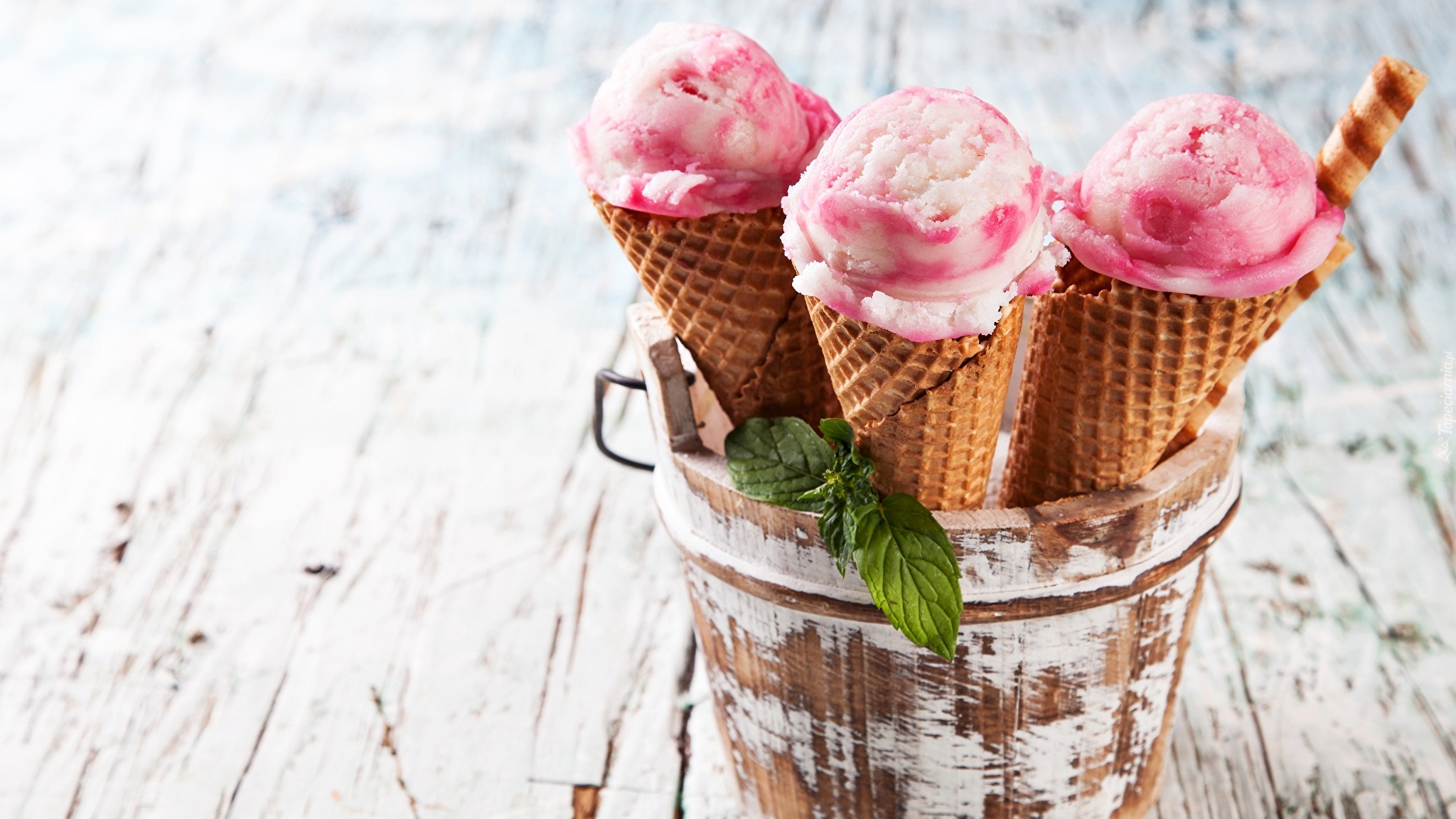 Edytor tapety: Owocowe lody w wafelkach