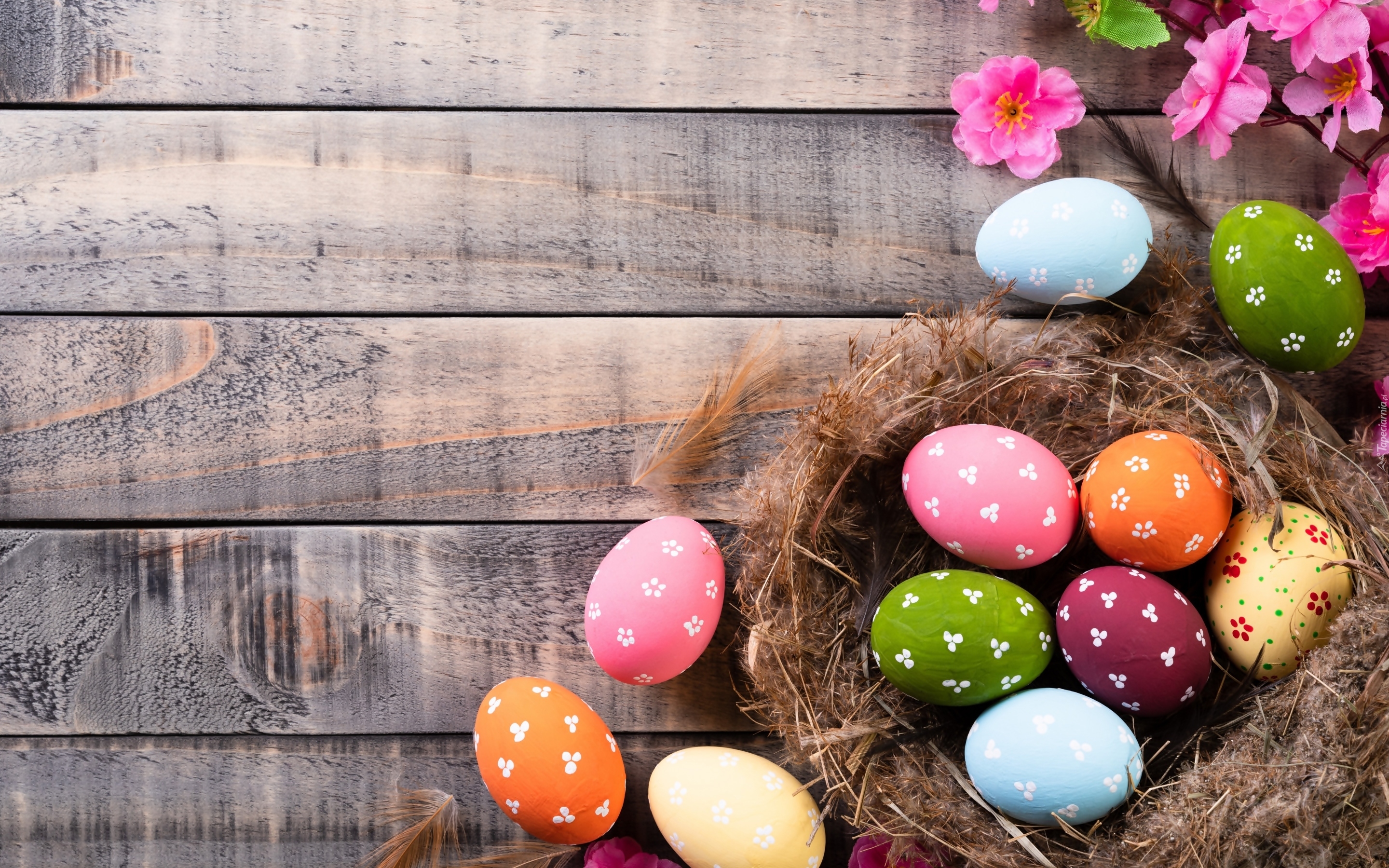 Edytor tapety: Kolorowe pisanki z kwiatkami