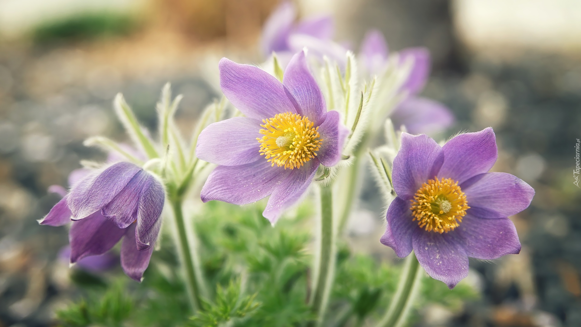 Edytor tapety: Fioletowe sasanki z żółtymi pręcikami