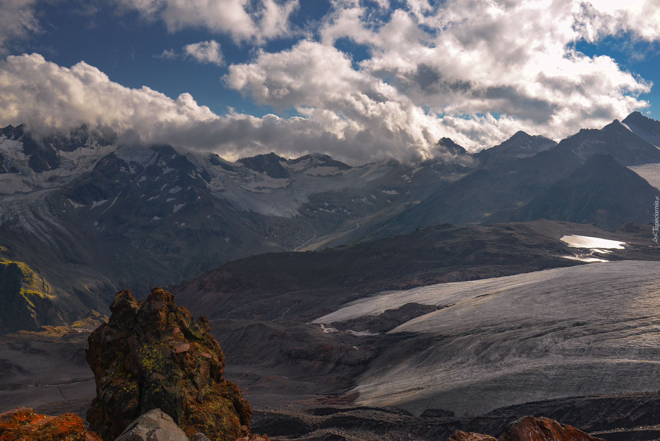 Edytor tapety: Chmury rozpostarte nad górami