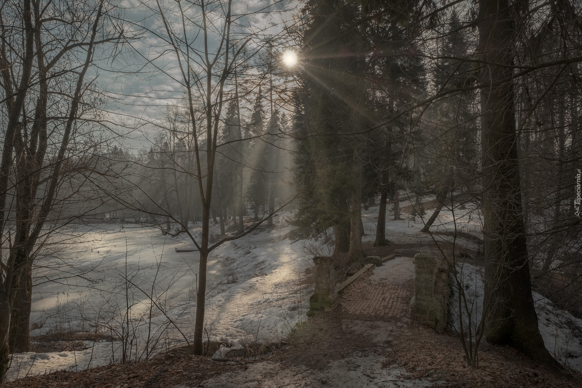 Edytor tapety: Promienie słońca nad ośnieżonym stawem Barskim w Serednikowie