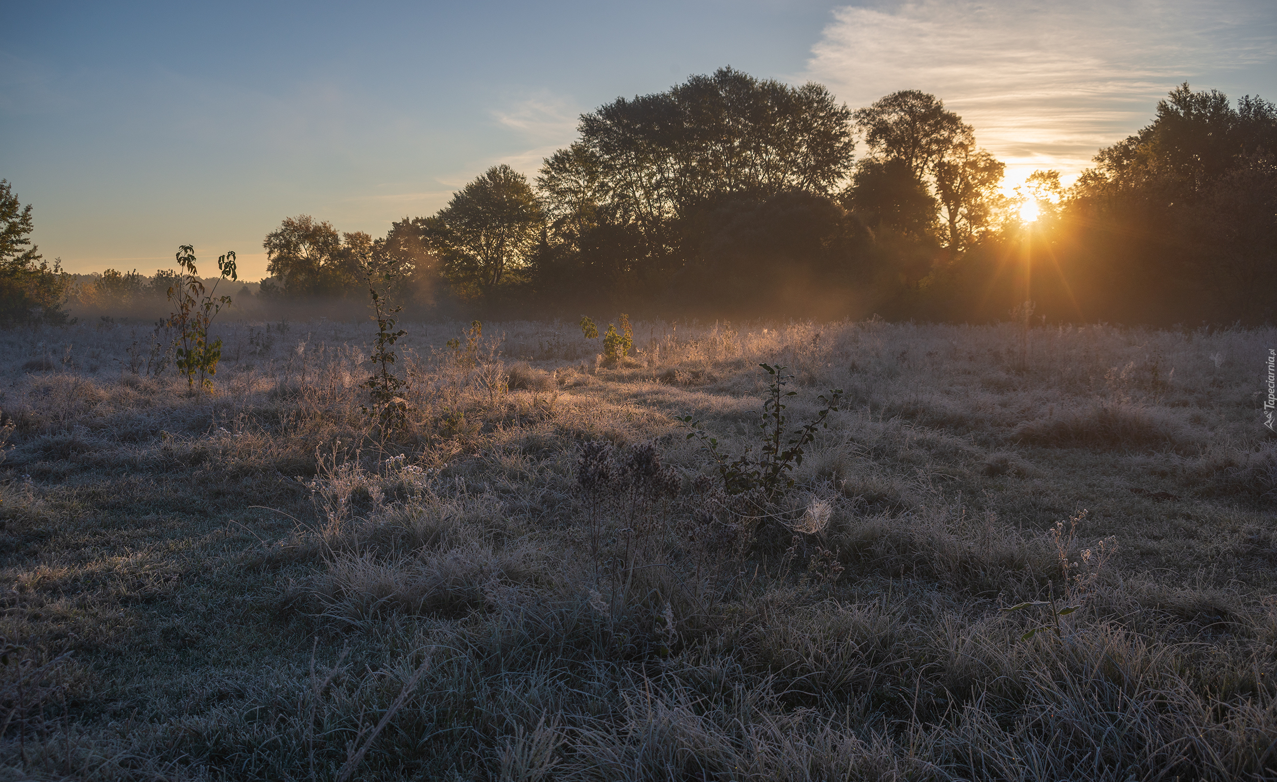 Edytor tapety: Oszronione trawy w promieniach wschodzącego słońca