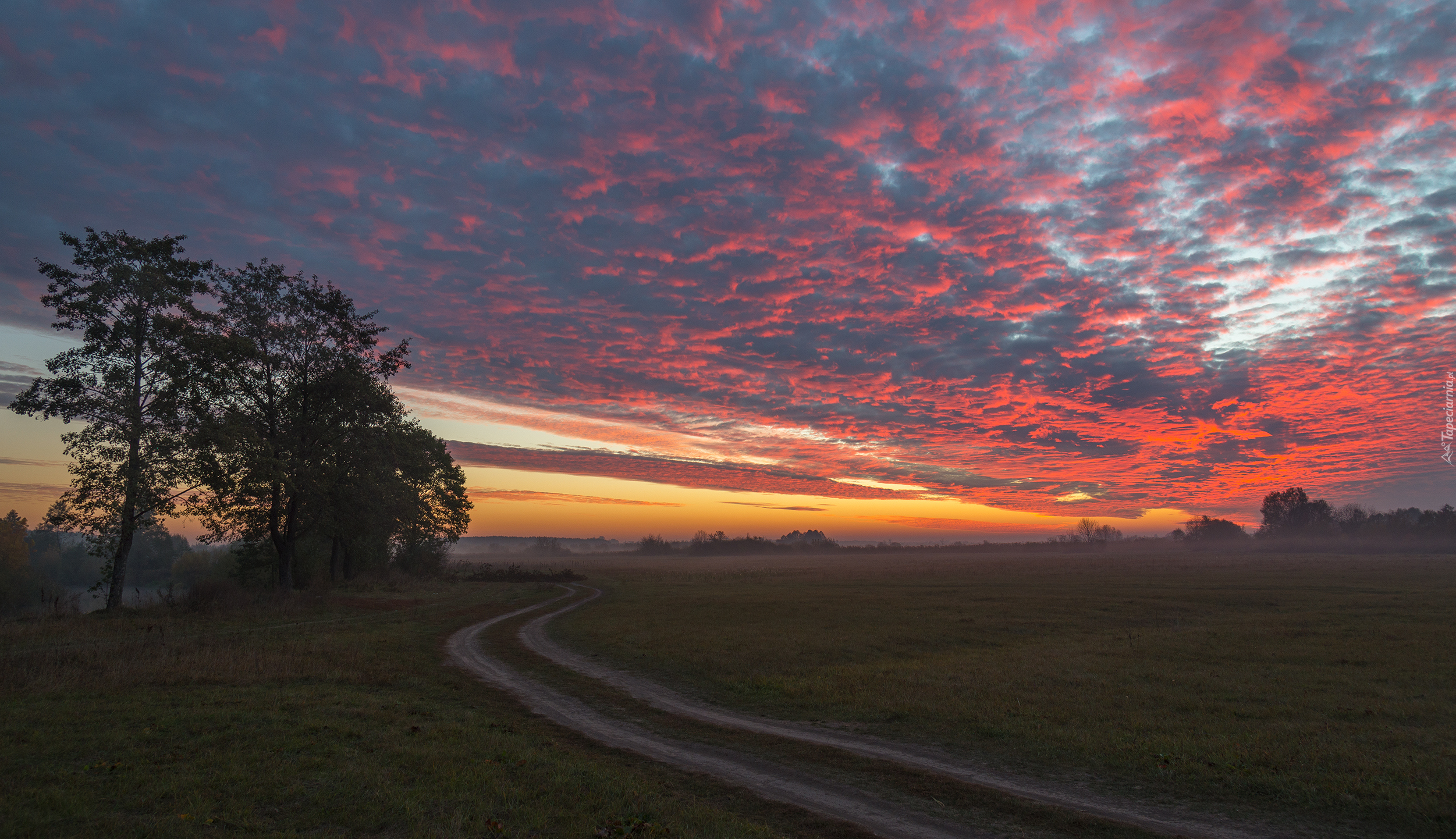 Edytor tapety: Kolorowe niebo nad drogą polną