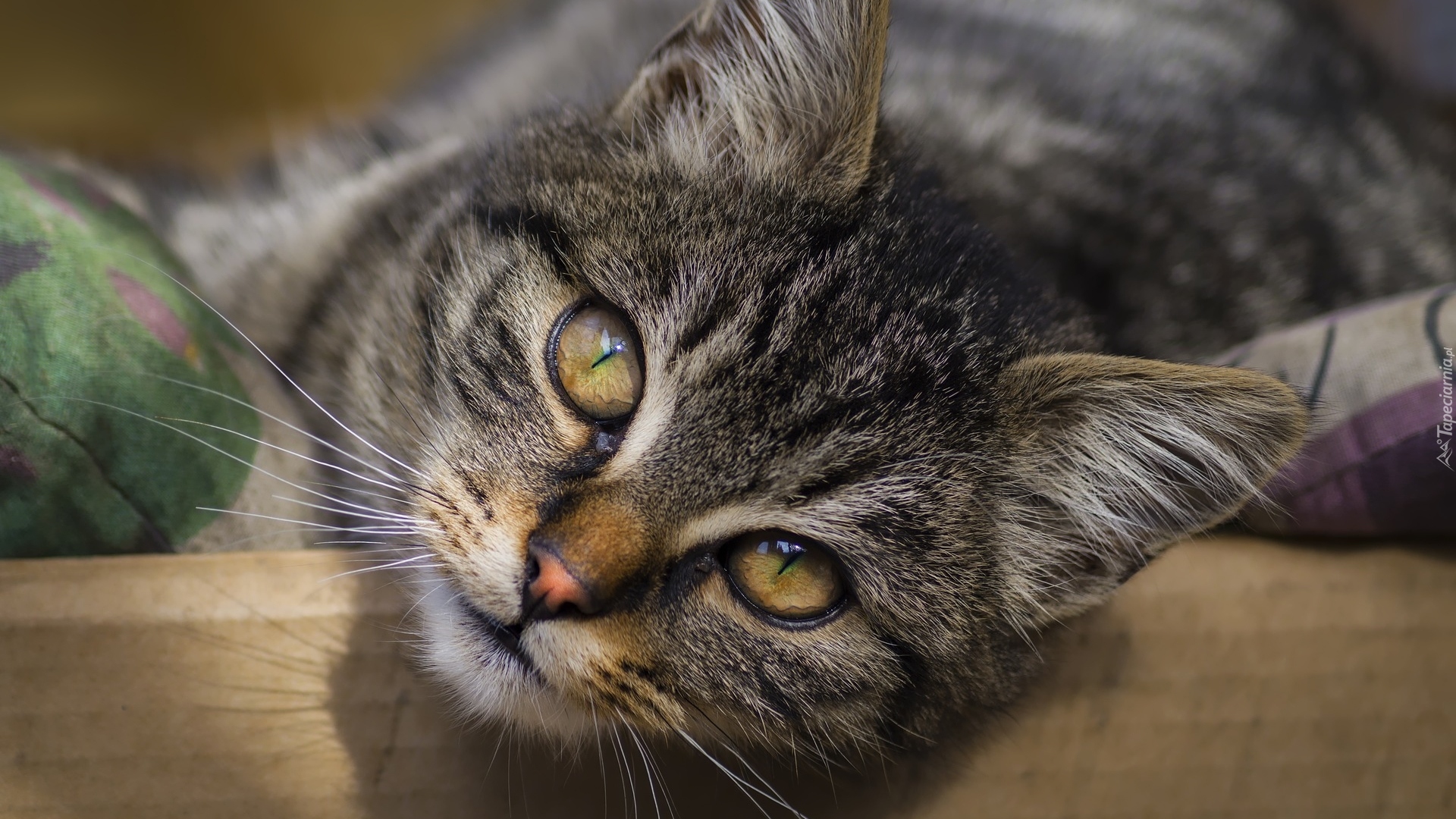 Edytor tapety: Zaciekawiony bury kot