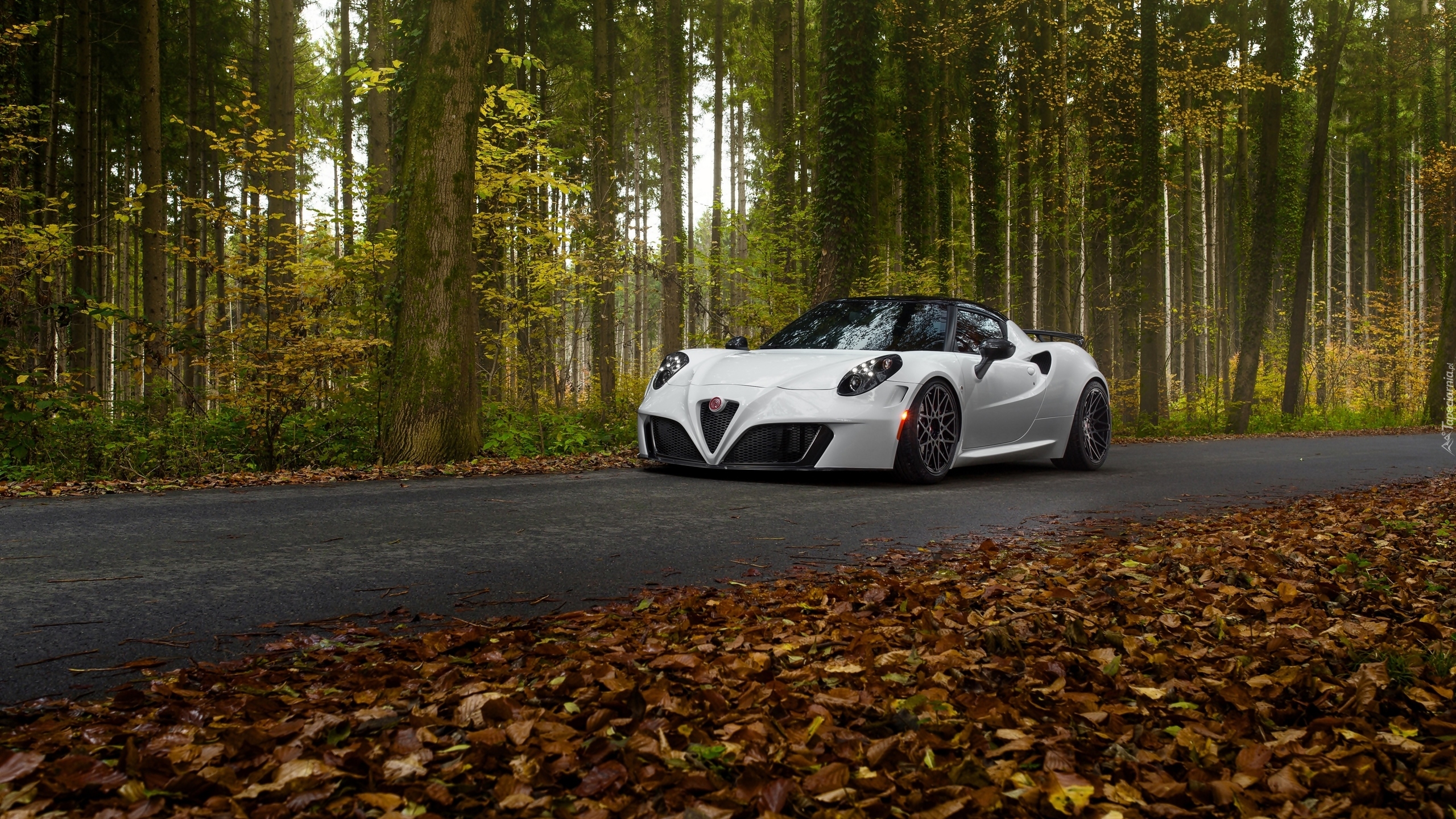 Edytor tapety: Alfa Romeo 4C na leśnej drodze