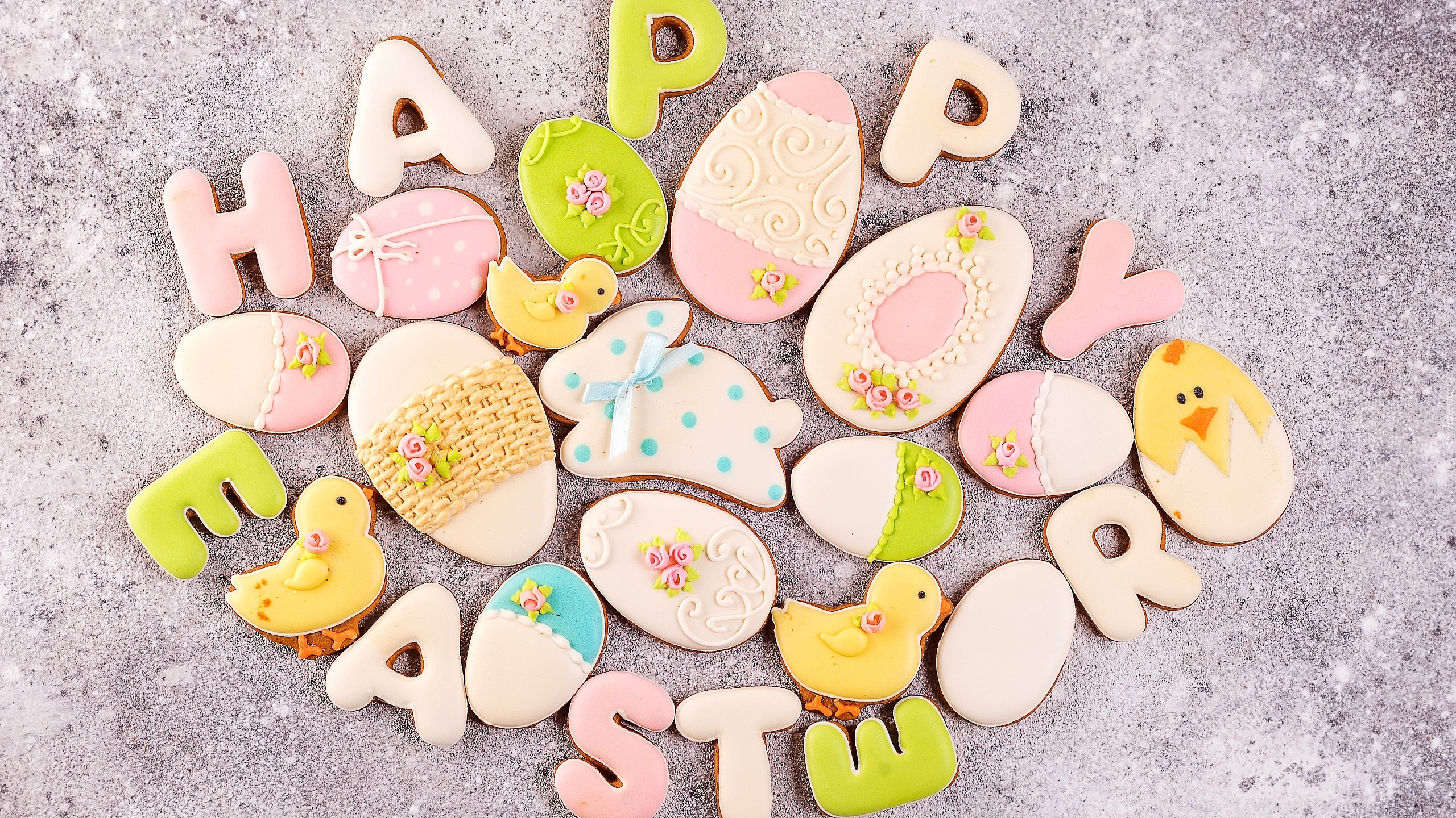 Edytor tapety: Wielkanocne ciasteczka w kształcie pisanek i kurczaczków