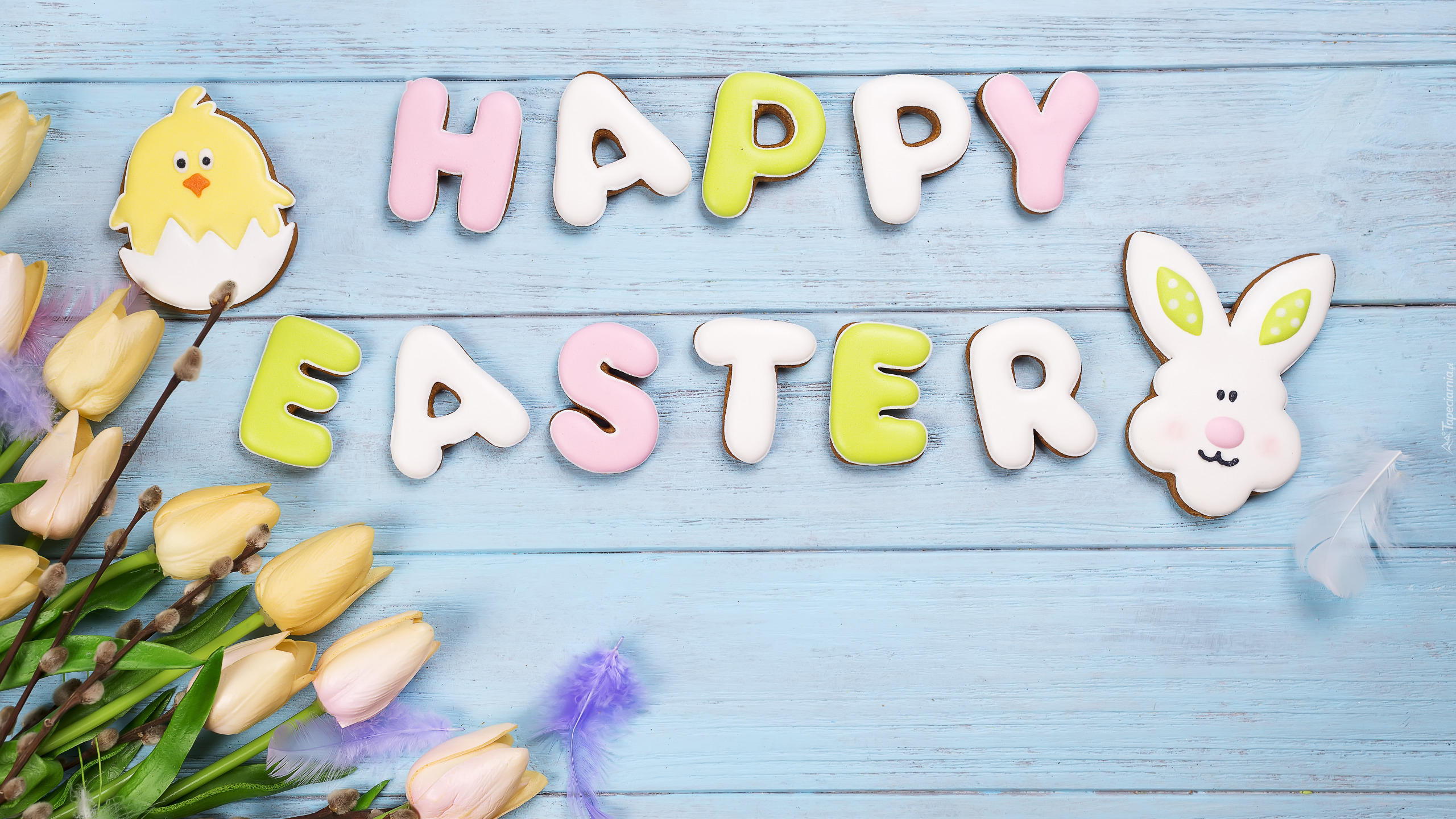 Edytor tapety: Życzenia wielkanocne ułożone z lukrowanych ciasteczek