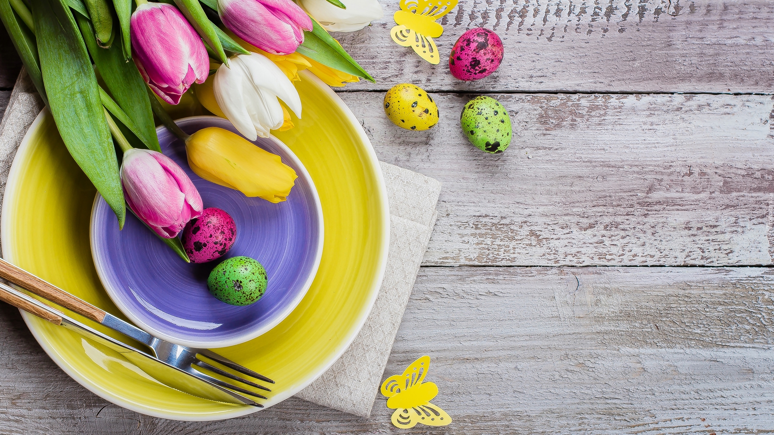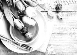 Edytor tapety: Tulipany i pisanki na talerzu