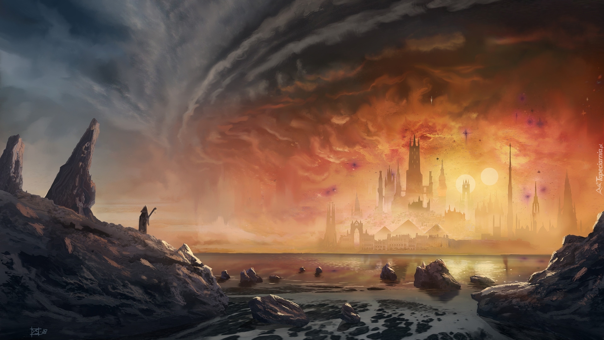 Edytor tapety: Widok ze skał na zamek w blasku słońca