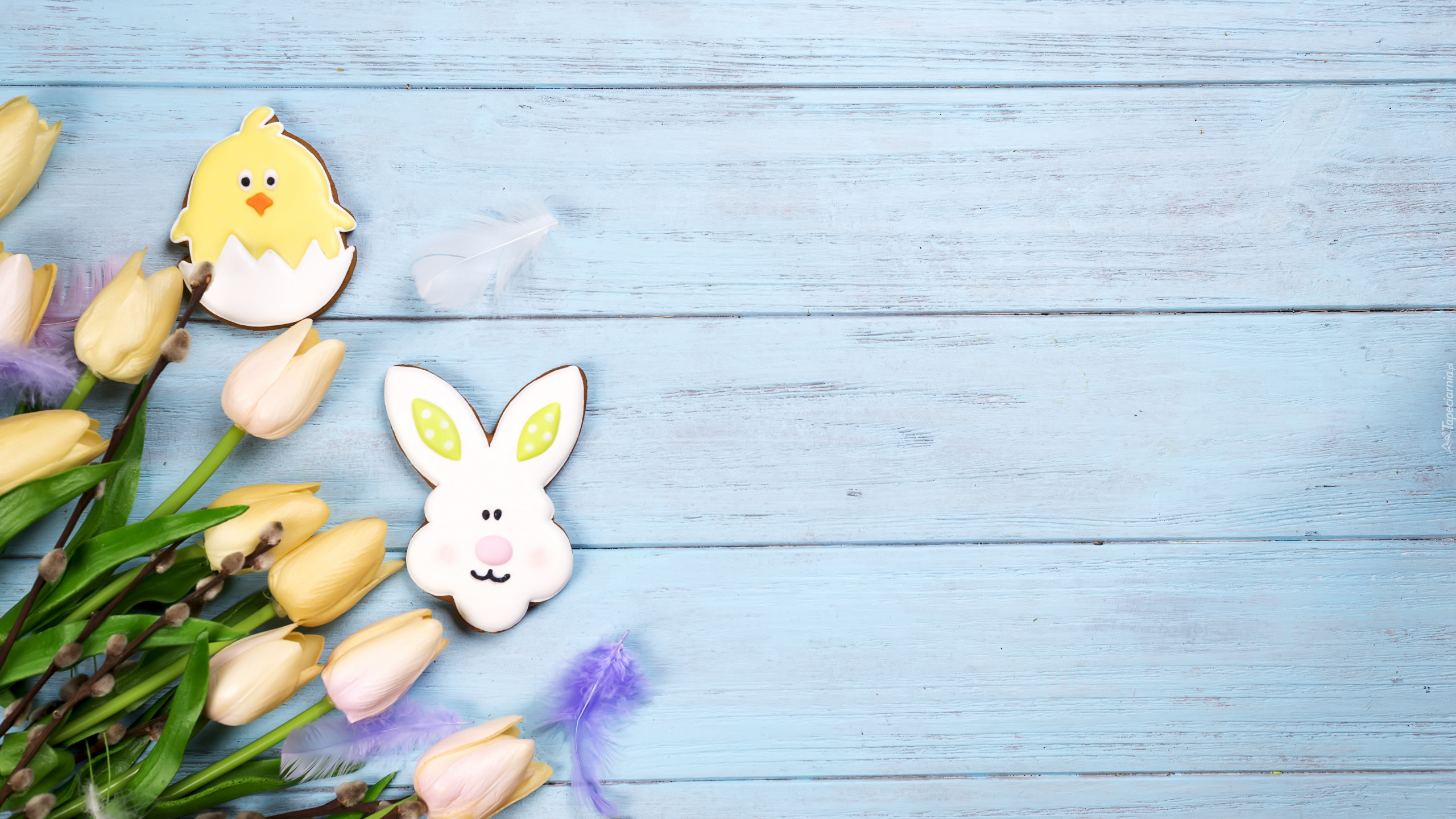 Edytor tapety: Ciasteczka przy baziach i tulipanach