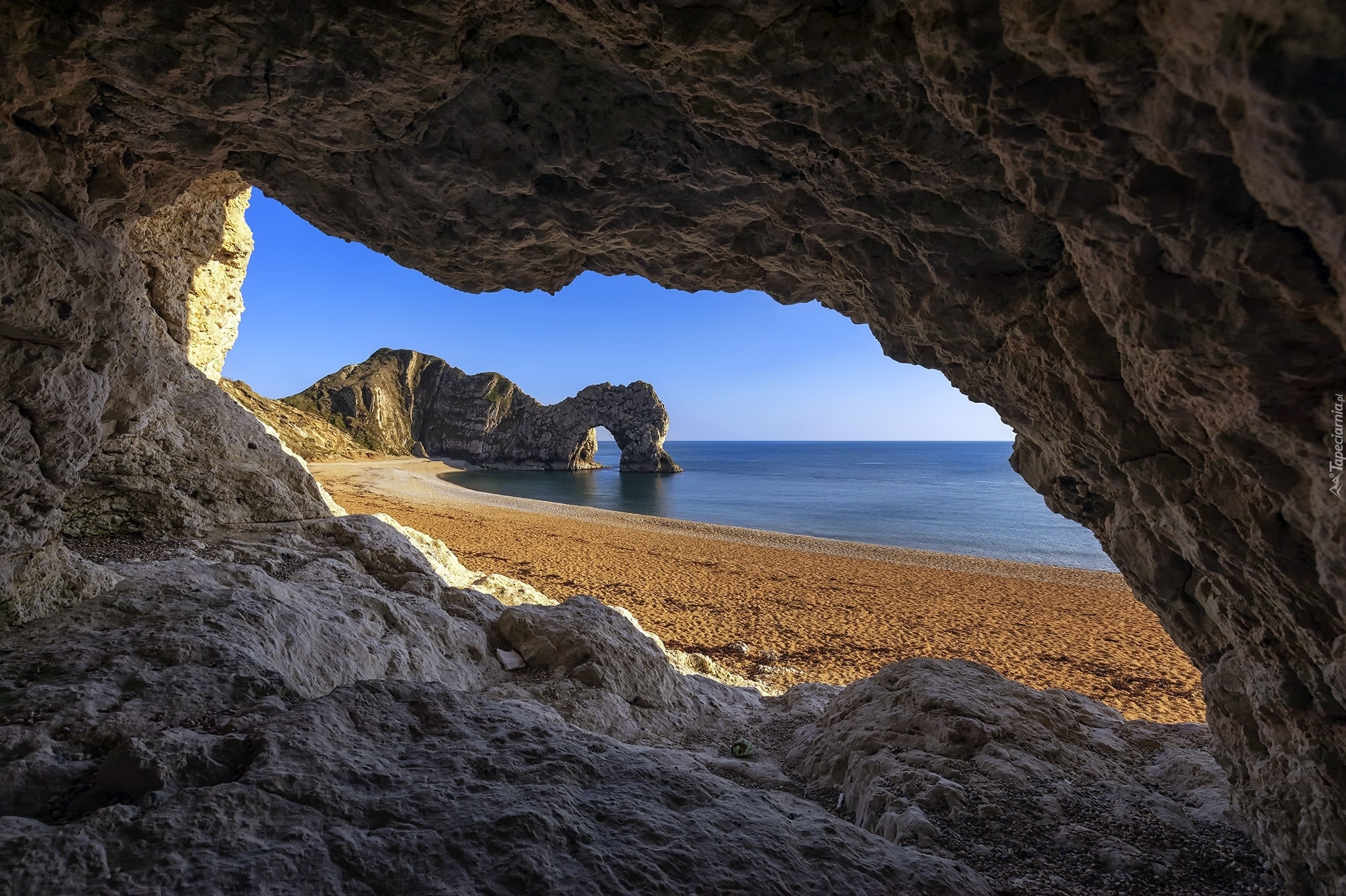 Edytor tapety: Łuk wapienny Durdle Door nad morzem