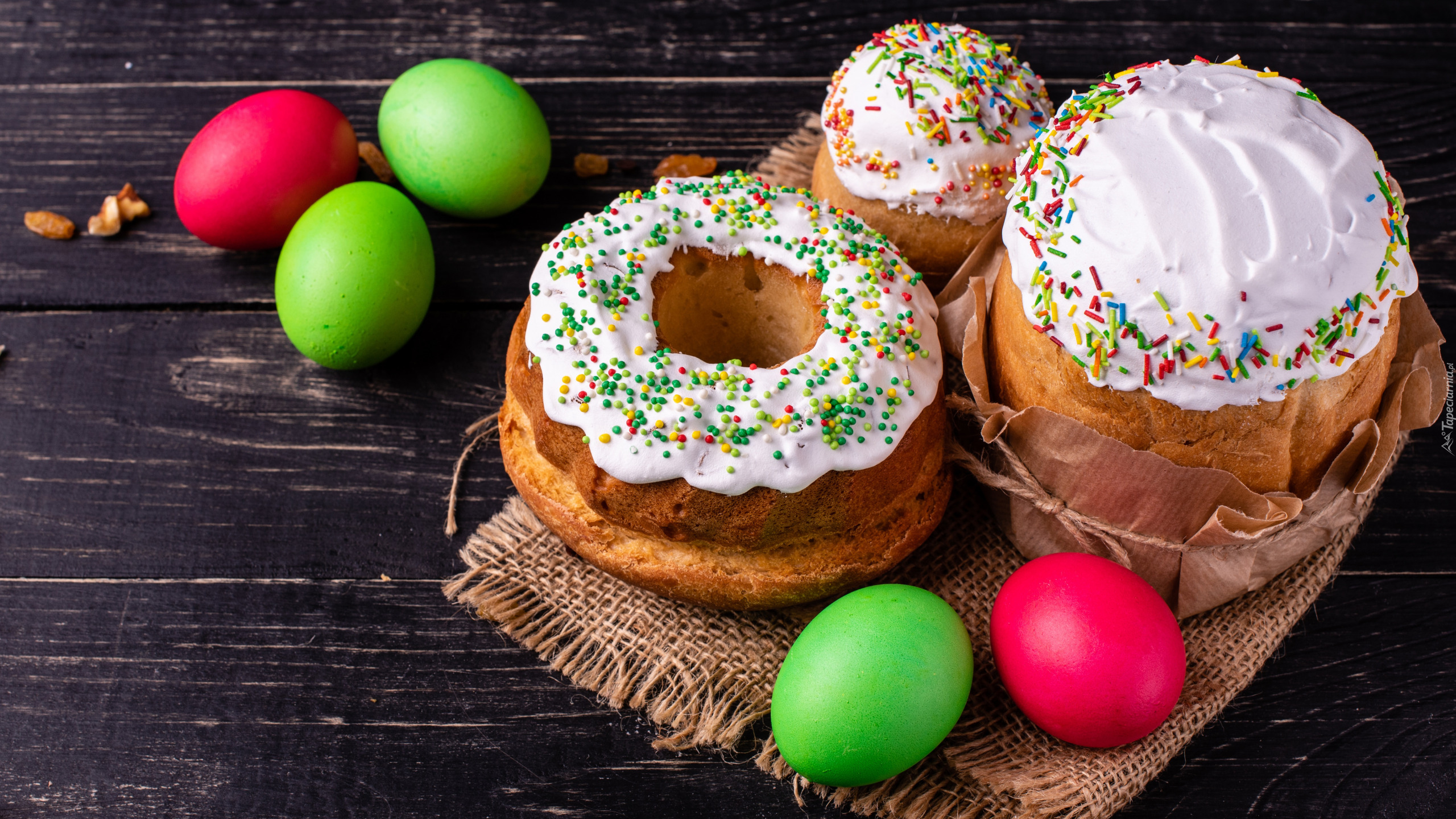 Edytor tapety: Ciasto i pisanki wielkanocne