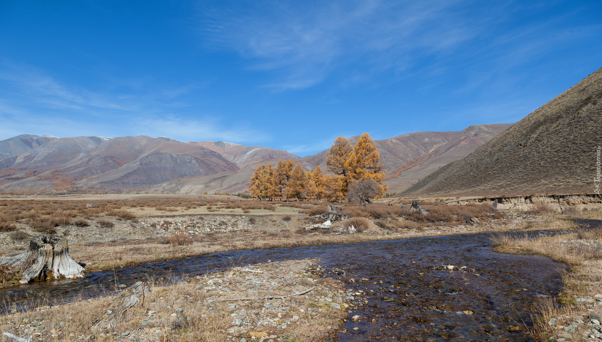 Edytor tapety: Rozwidlenie górskiej rzeki