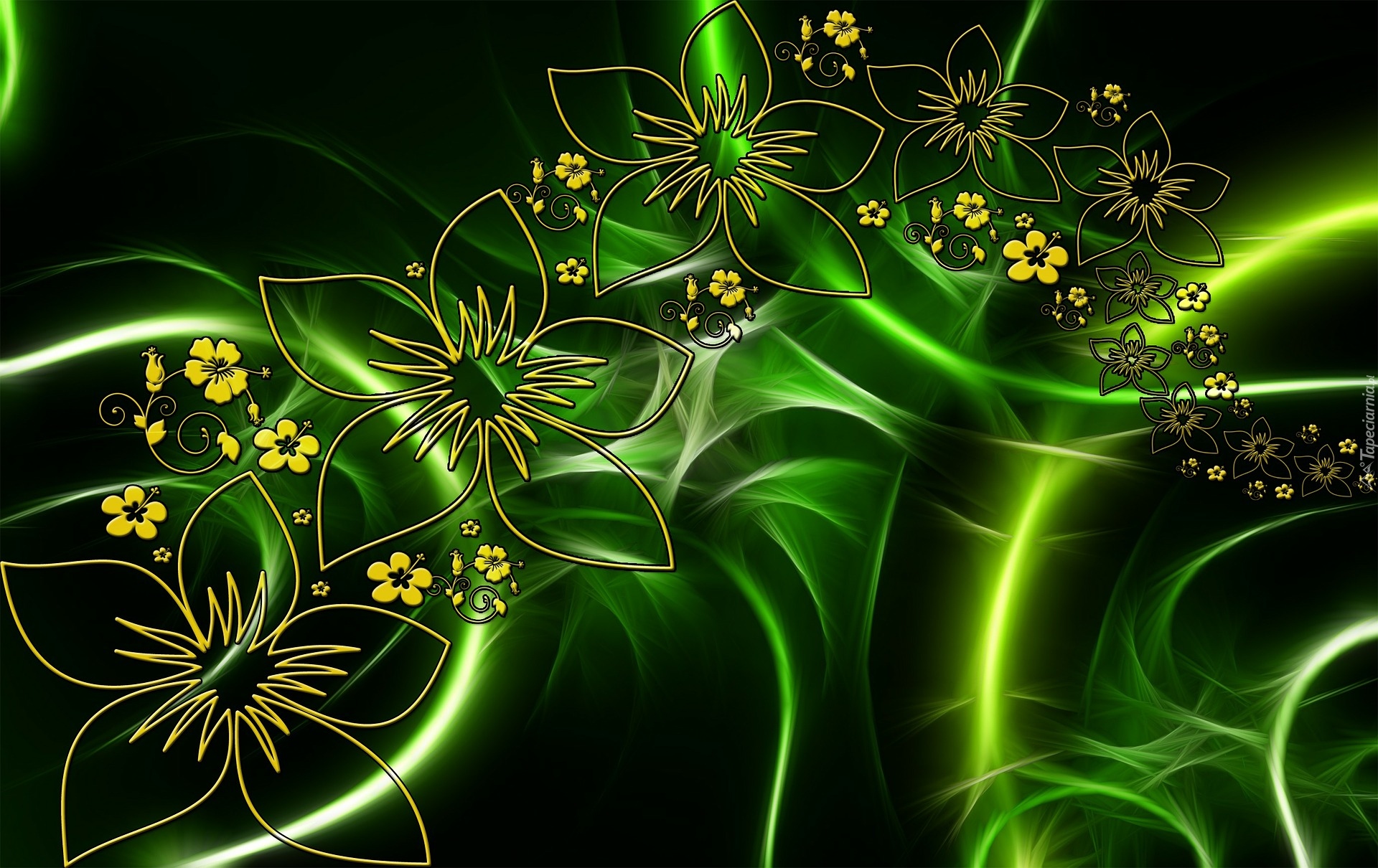 Edytor tapety: Zielony fractalius z żółtymi kwiatami