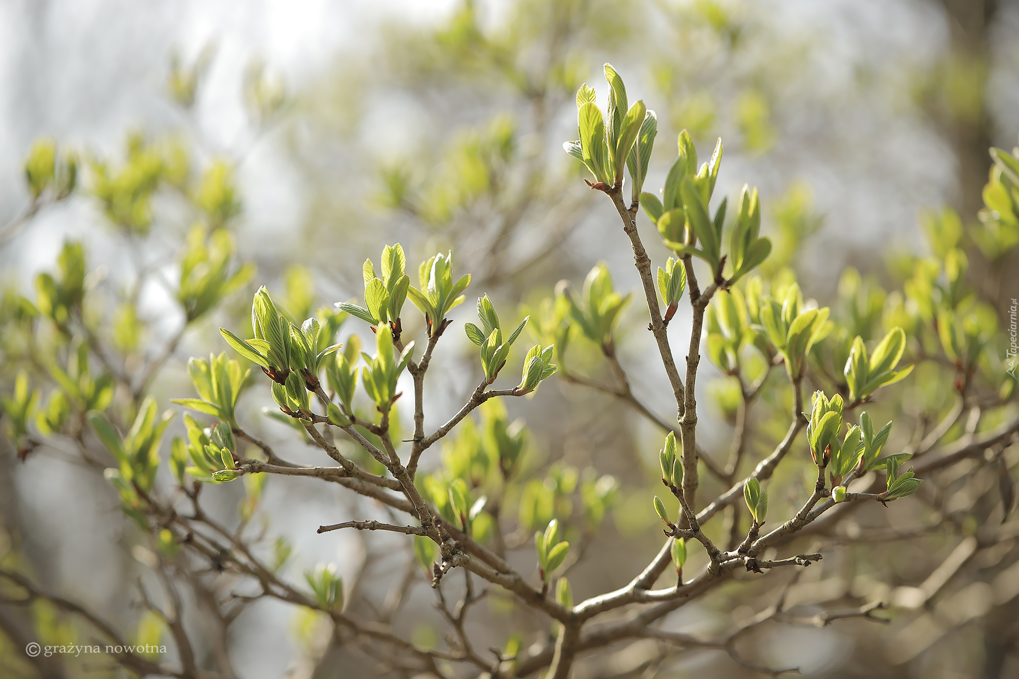 Edytor tapety: Zielone listki na gałązkach