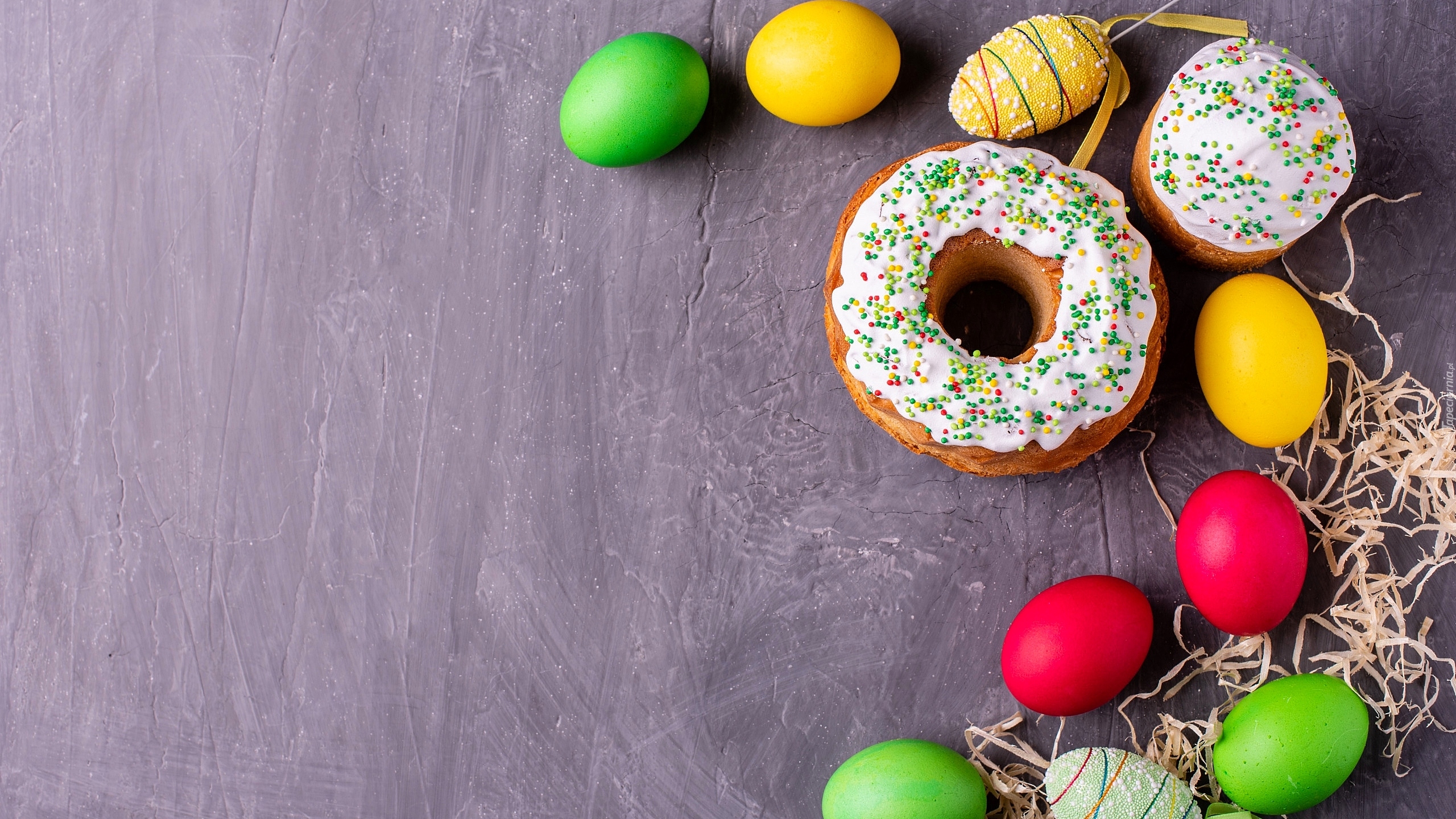 Edytor tapety: Baby z lukrem i kolorowymi pisankami