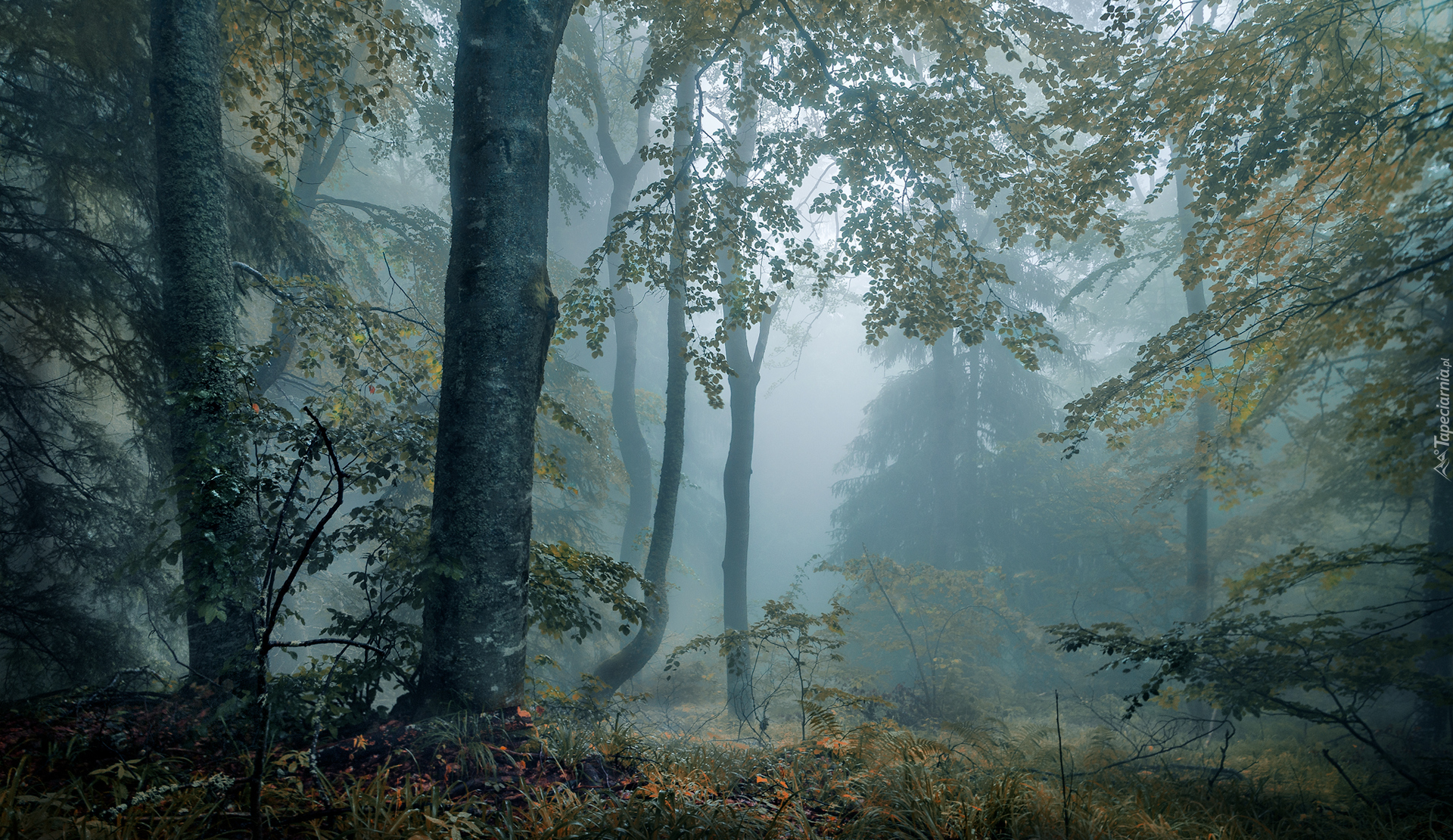 Edytor tapety: Drzewa osnute mgłą