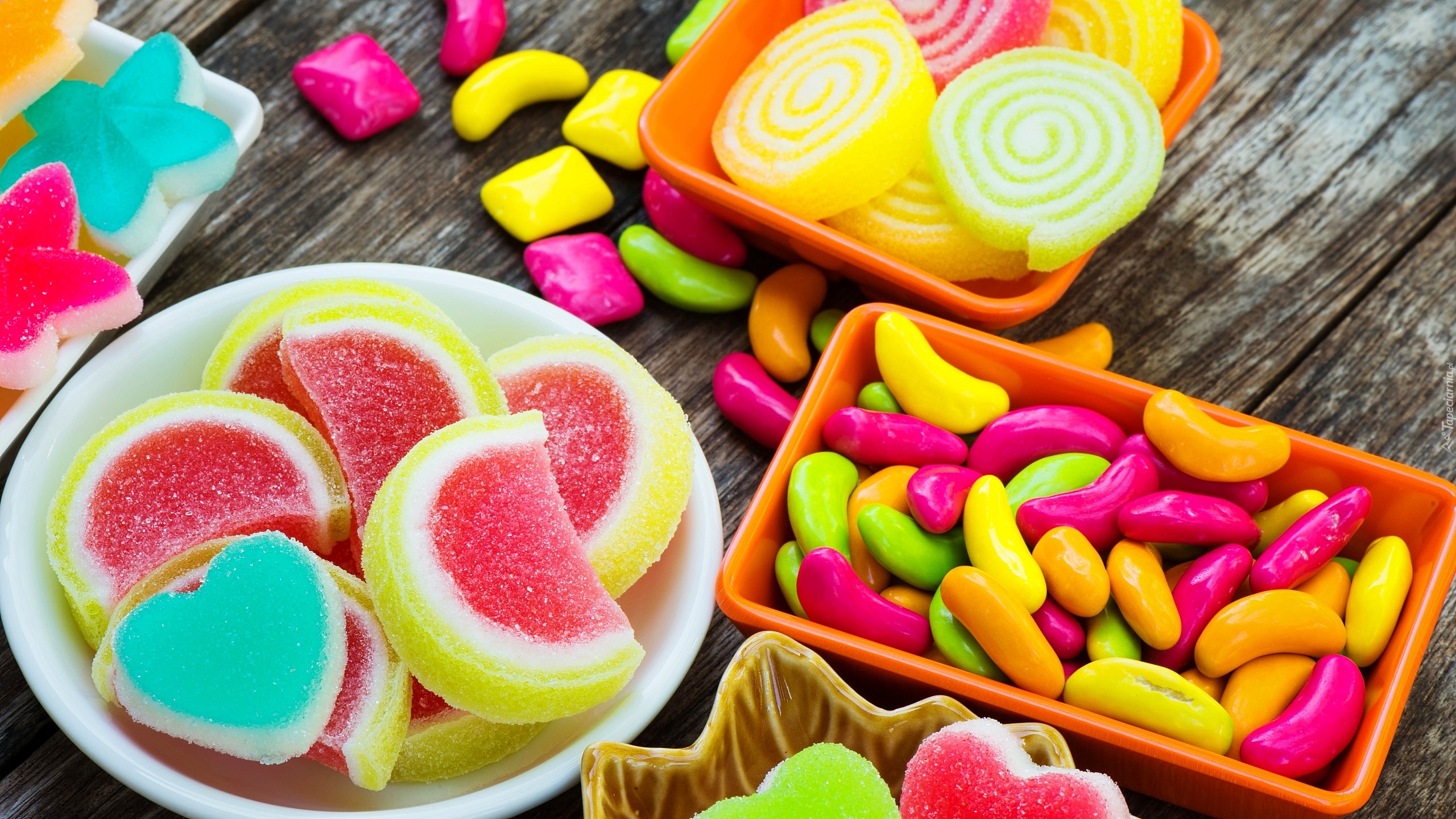 Edytor tapety: Kolorowe galaretki w miseczkach
