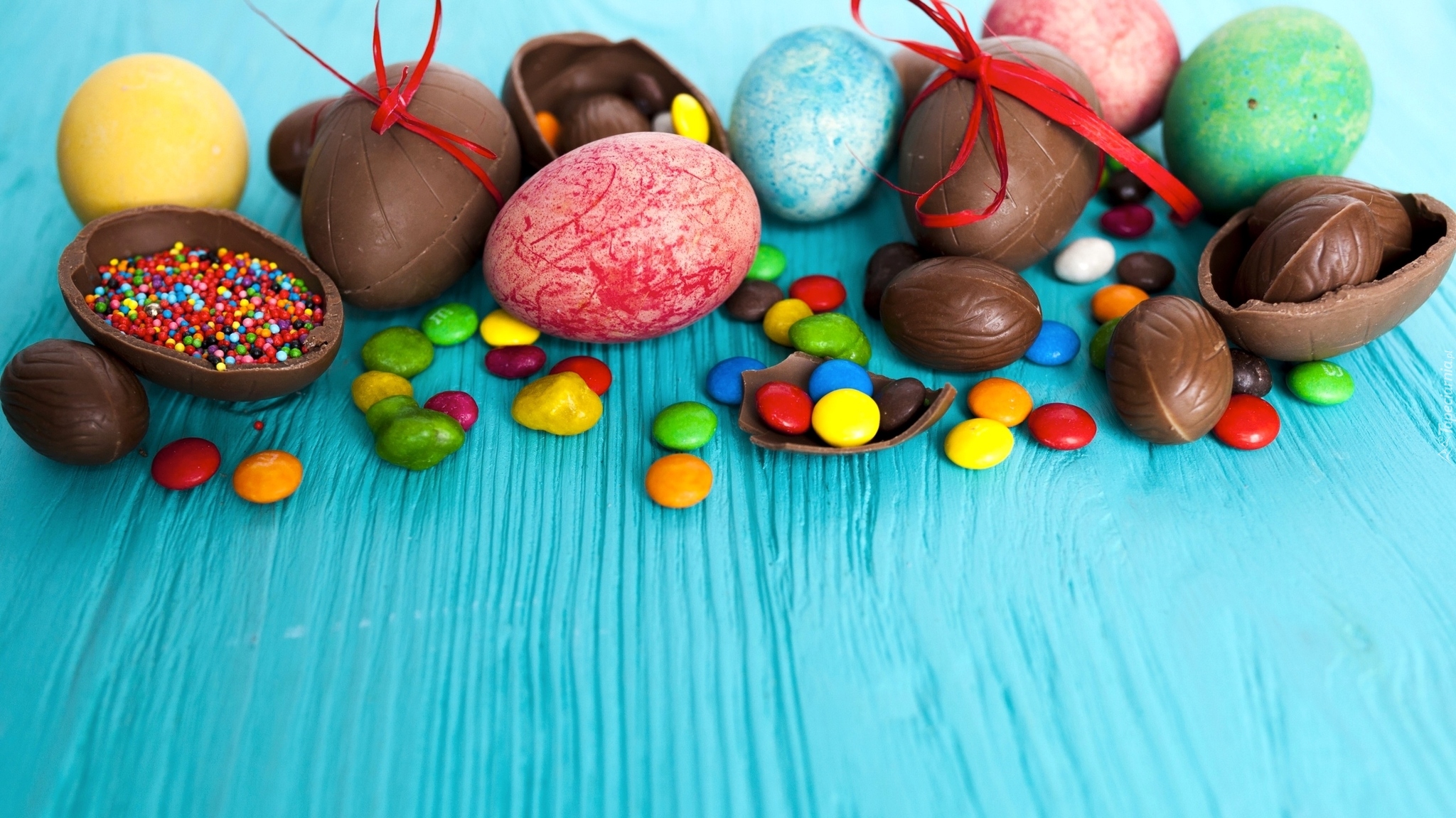 Edytor tapety: Czekoladowe jajeczka i lentilki