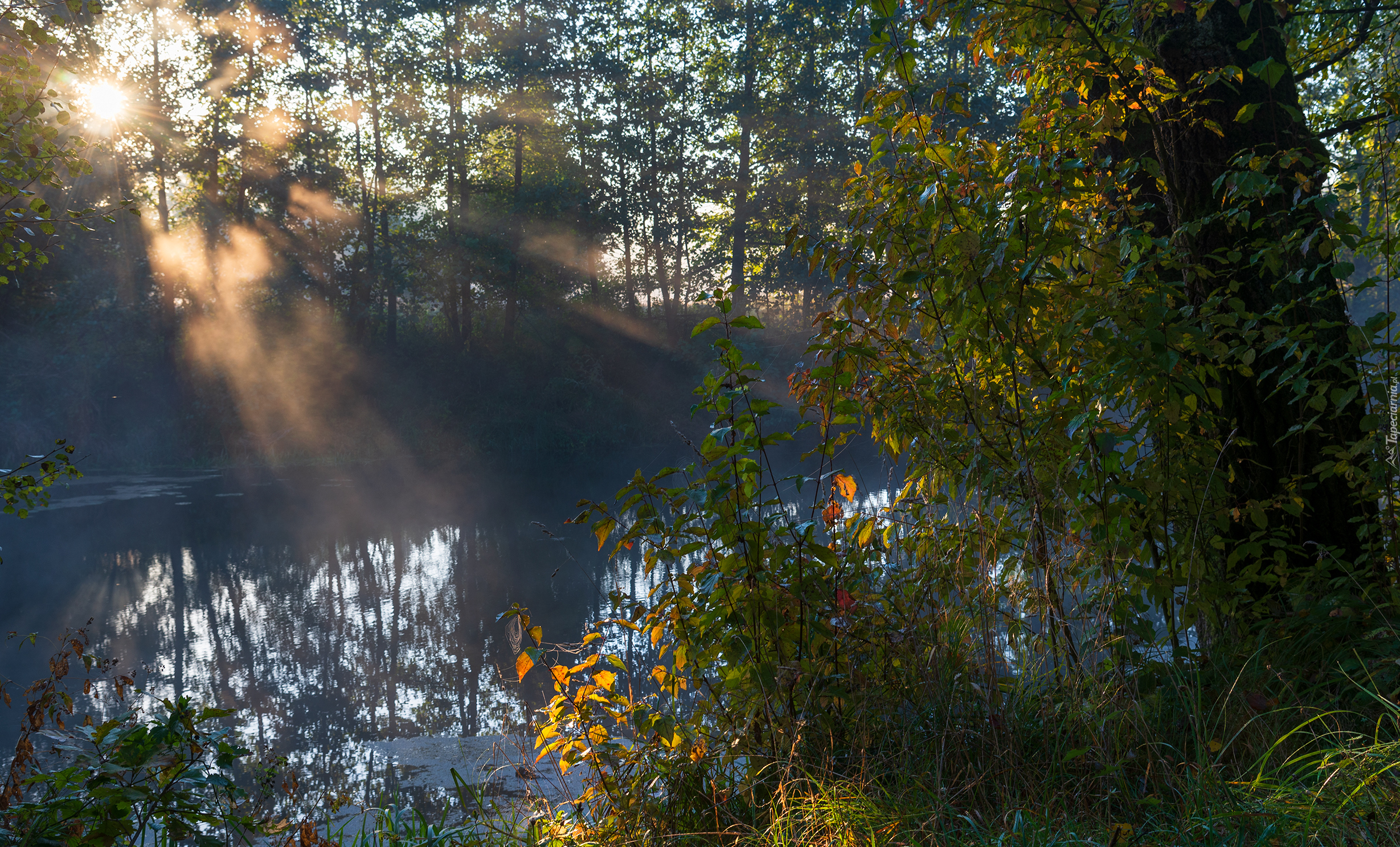 Edytor tapety: Rzeka i roślinność w promieniach słońca