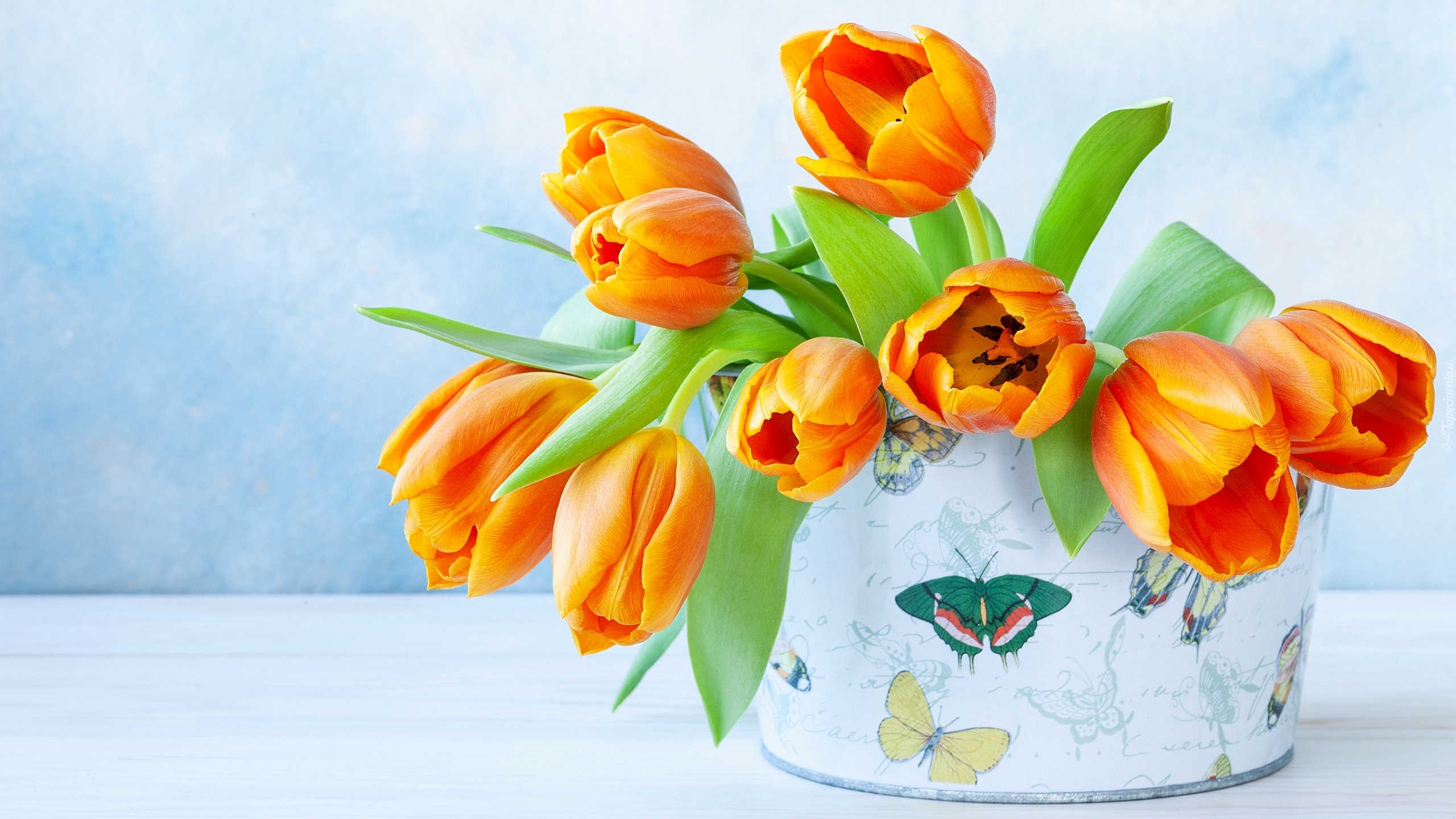 Edytor tapety: Pomarańczowe tulipany w pudełku