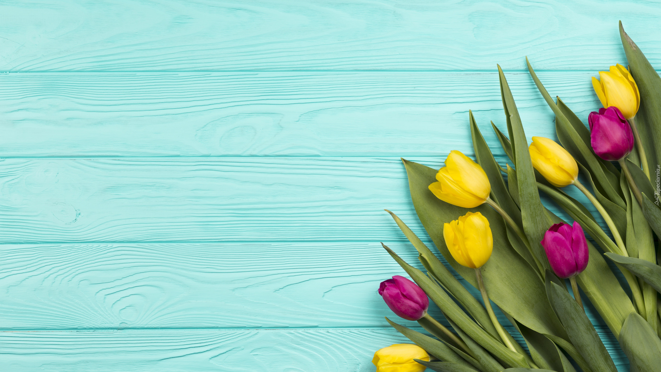 Edytor tapety: Żółte i ciemnoróżowe tulipany