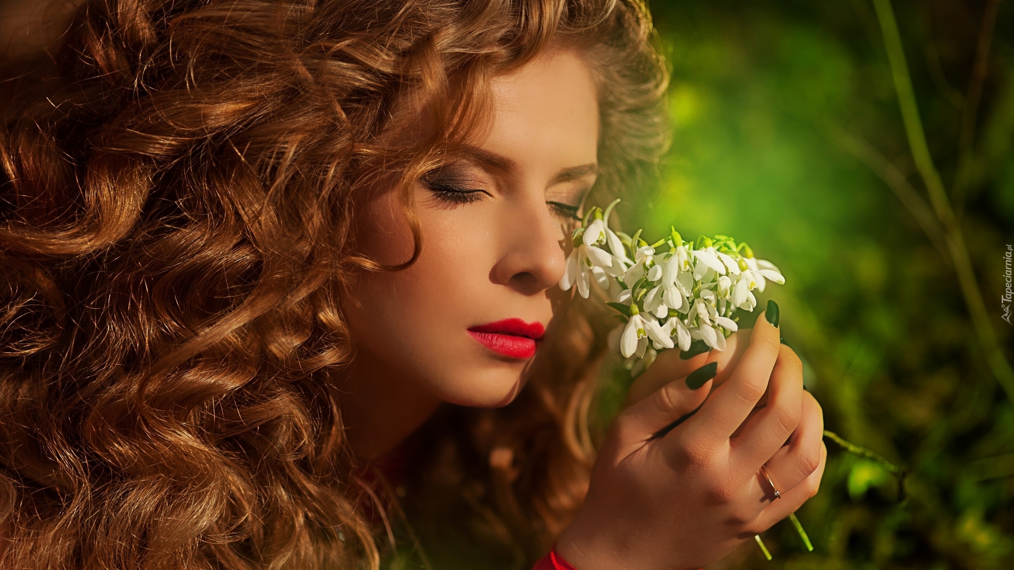 Edytor tapety: Rudowłosa dziewczyna z przebiśniegami