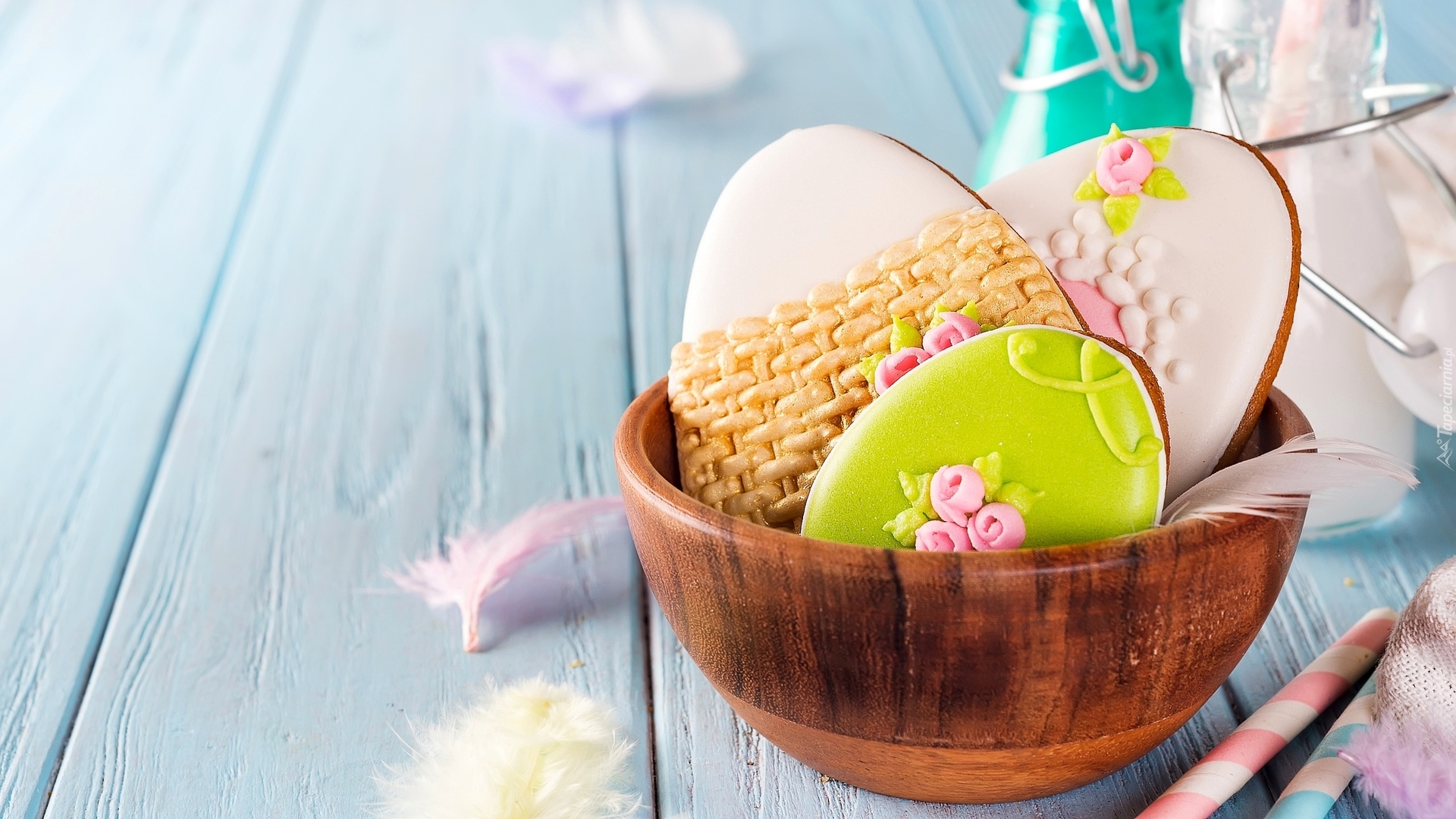 Edytor tapety: Ciasteczkowe pisanki w drewnianej miseczce