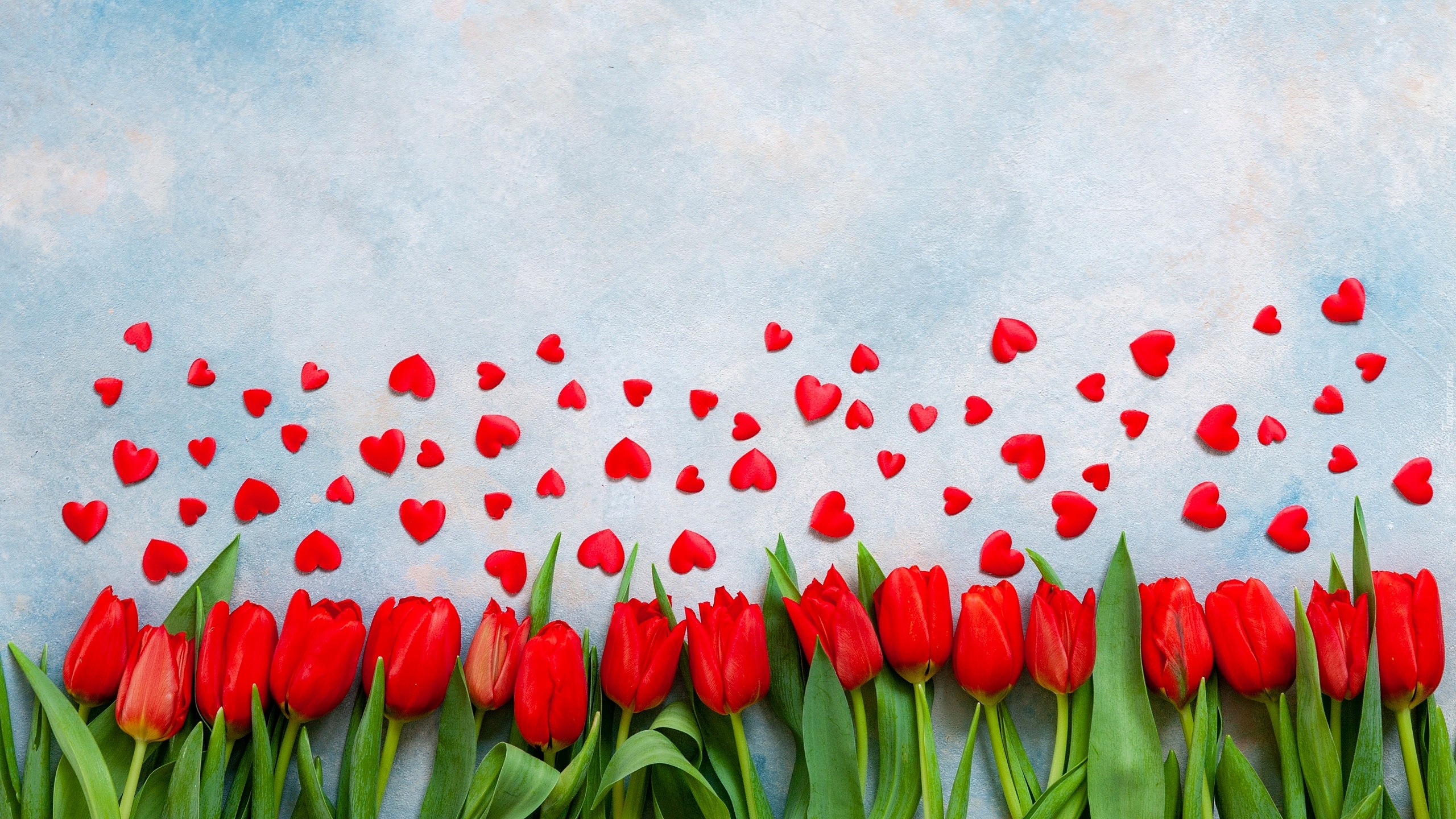 Edytor tapety: Czerwone serduszka nad tulipanami
