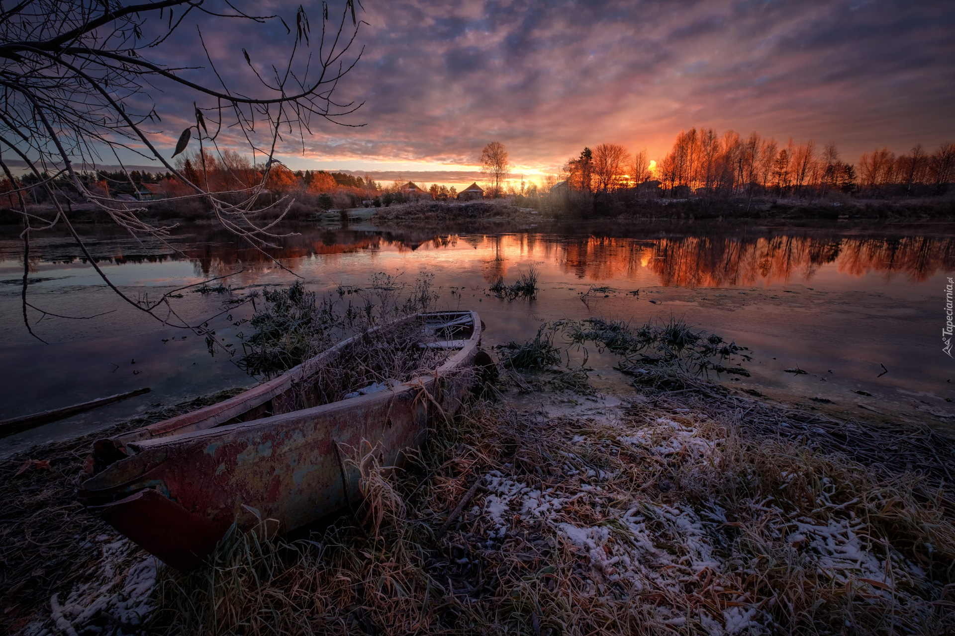 Edytor tapety: Oszroniona łódka nad rzeką Dubna